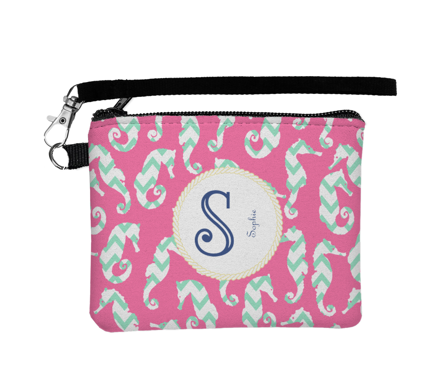 This sea horse design combines the beauty of seahorses with the fun loving chevron pattern. The design features mint, a bubble gum pink background and some gold colors, all of which can be customized to your favorite colors with just a few clicks!
