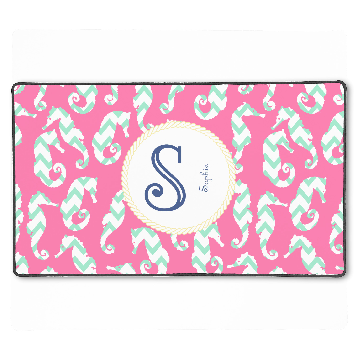 This sea horse design combines the beauty of seahorses with the fun loving chevron pattern. The design features mint, a bubble gum pink background and some gold colors, all of which can be customized to your favorite colors with just a few clicks!