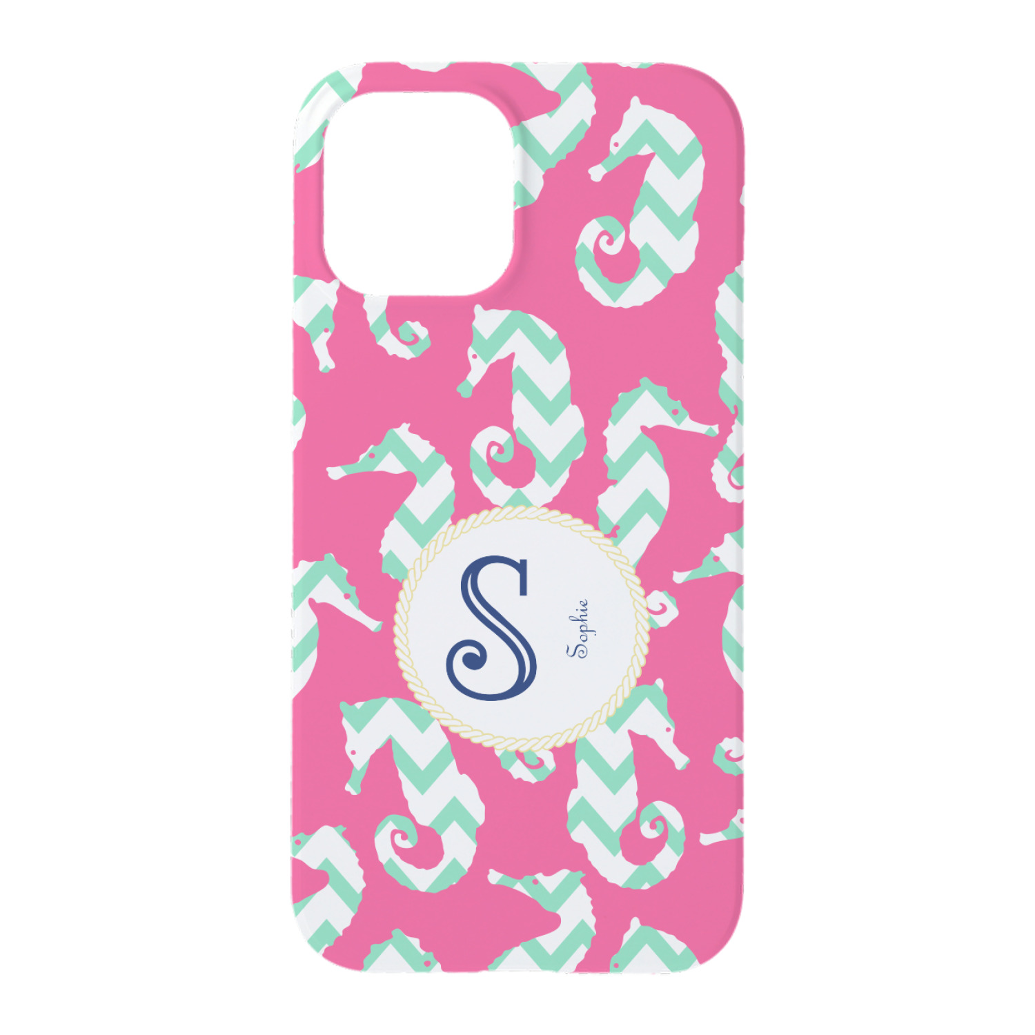 This sea horse design combines the beauty of seahorses with the fun loving chevron pattern. The design features mint, a bubble gum pink background and some gold colors, all of which can be customized to your favorite colors with just a few clicks!