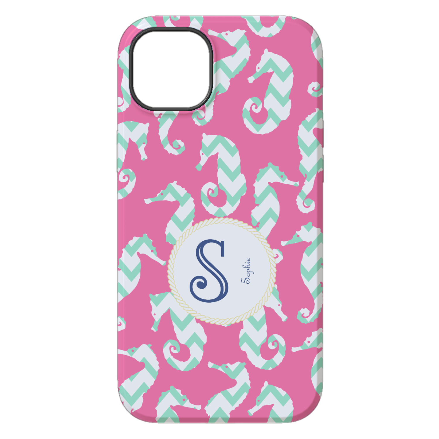 This sea horse design combines the beauty of seahorses with the fun loving chevron pattern. The design features mint, a bubble gum pink background and some gold colors, all of which can be customized to your favorite colors with just a few clicks!