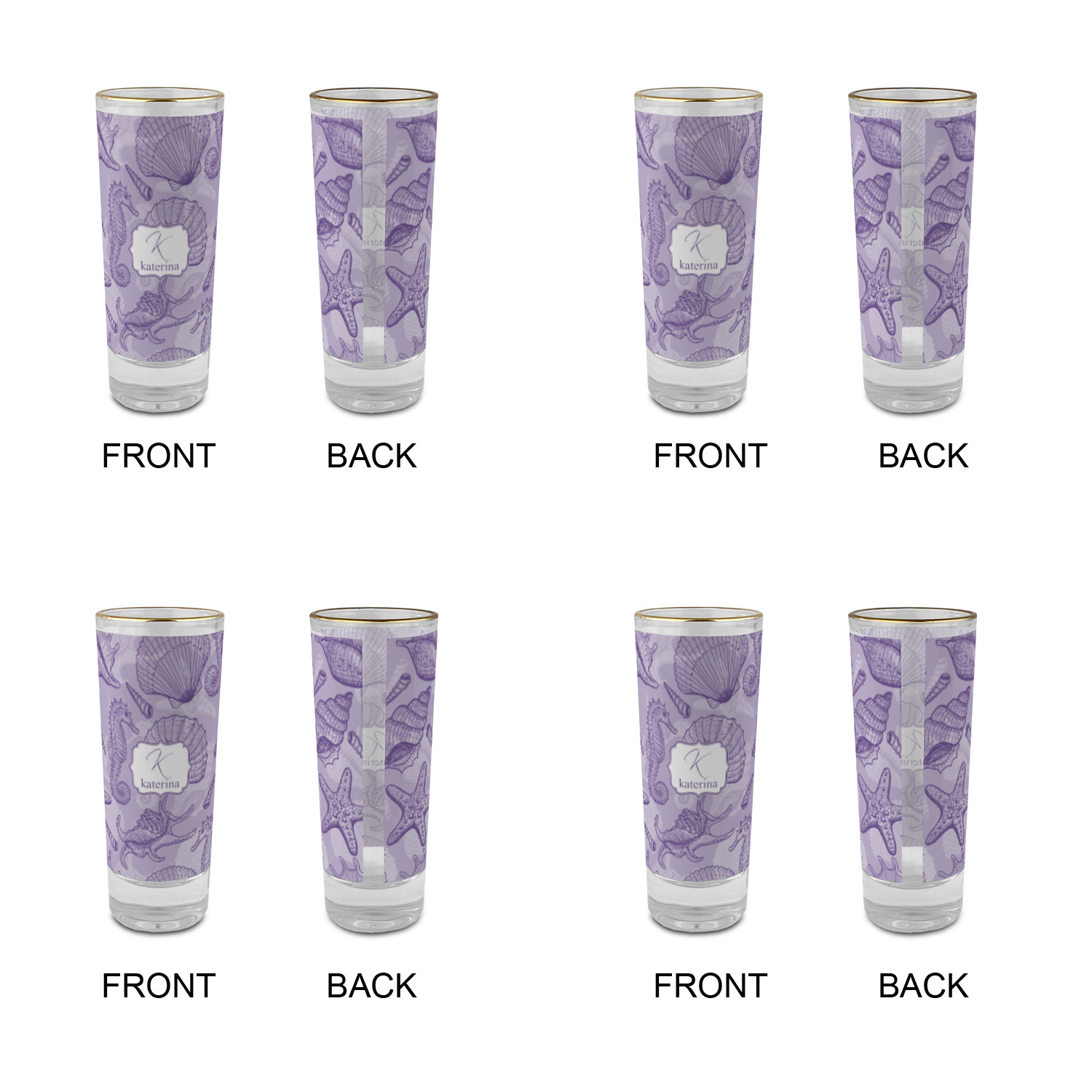 These glass shooter glasses are printed in full color with the design of your choice. These are a tall shooter 2 oz size and stand 4" tall. The print is a full wrap design to boldly display your personalization.