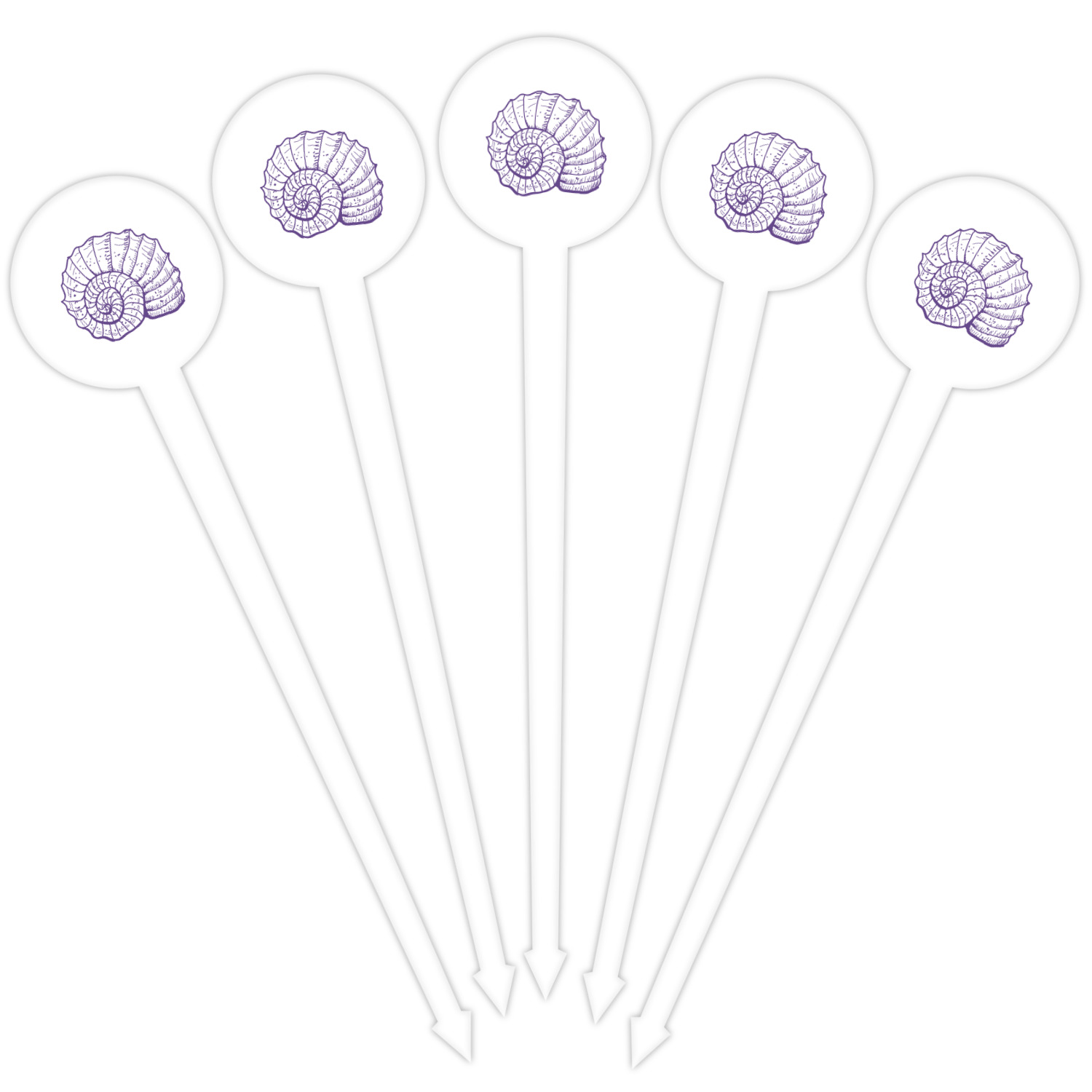 Coastal / Beach Style Designs for 4" Round Plastic Food Picks - White - Single-Sided
