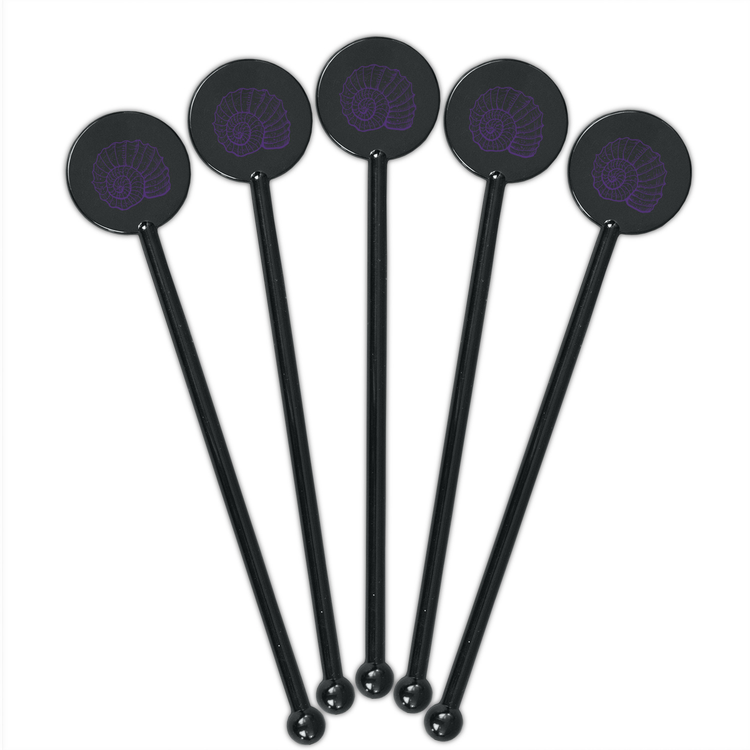 Coastal / Beach Style Designs for 5.5" Round Plastic Stir Sticks - Black - Single-Sided