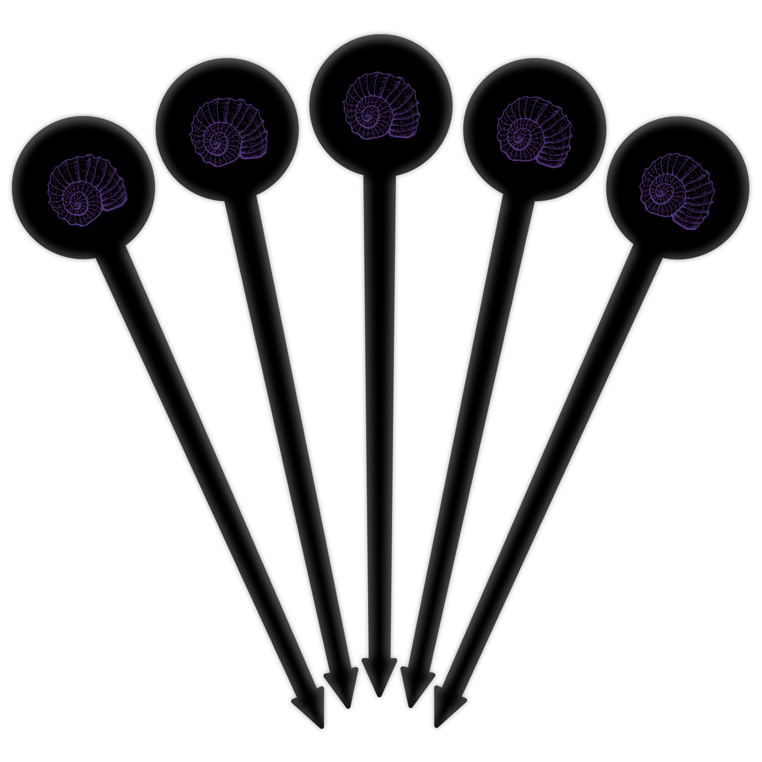 Coastal / Beach Style Designs for 6" Round Plastic Food Picks - Black - Single-Sided