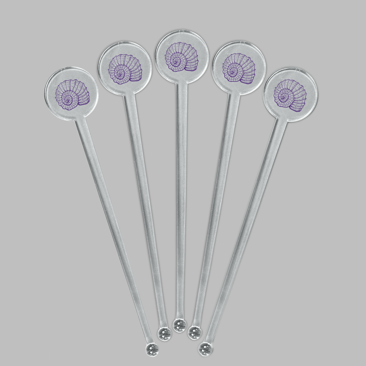 Coastal / Beach Style Designs for 7" Round Plastic Stir Sticks - Clear