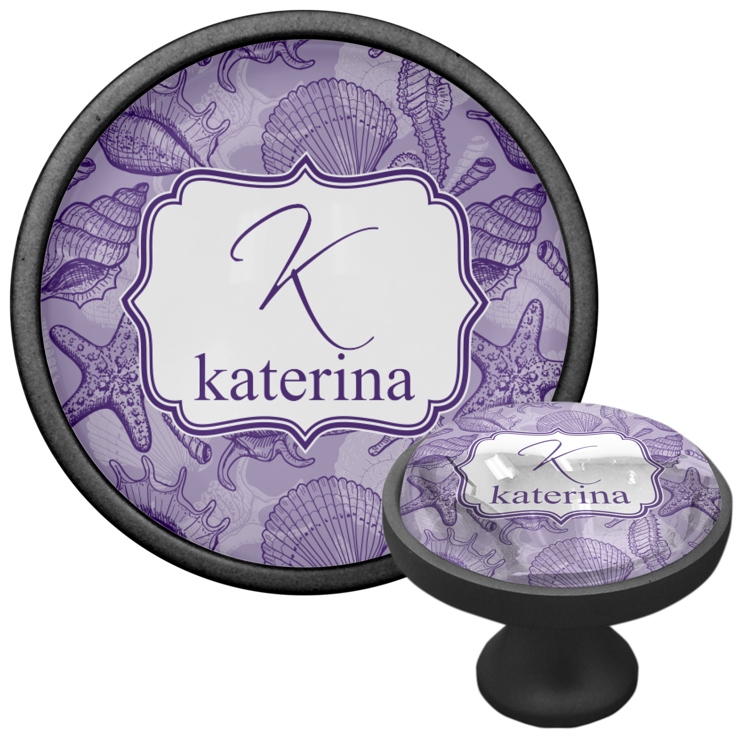 We sell these cabinet pulls in two different colors to better match your room's color scheme. We offer an oil-rubbed bronze base that is black in color, and a satin nickel option, which has a silver color. Your design is displayed across a high gloss vinyl insert that is placed on top of these cabinet handles. We then place a 1 inch thick glass cabochon atop the design, which seals the cabinet knob and makes the colors of your customization stand out. These custom cabinet knobs are approximately 1.3 inches in diameter. Your purchase includes a 1 inch screw that can be used to mount the knob to any cabinet in your home.
