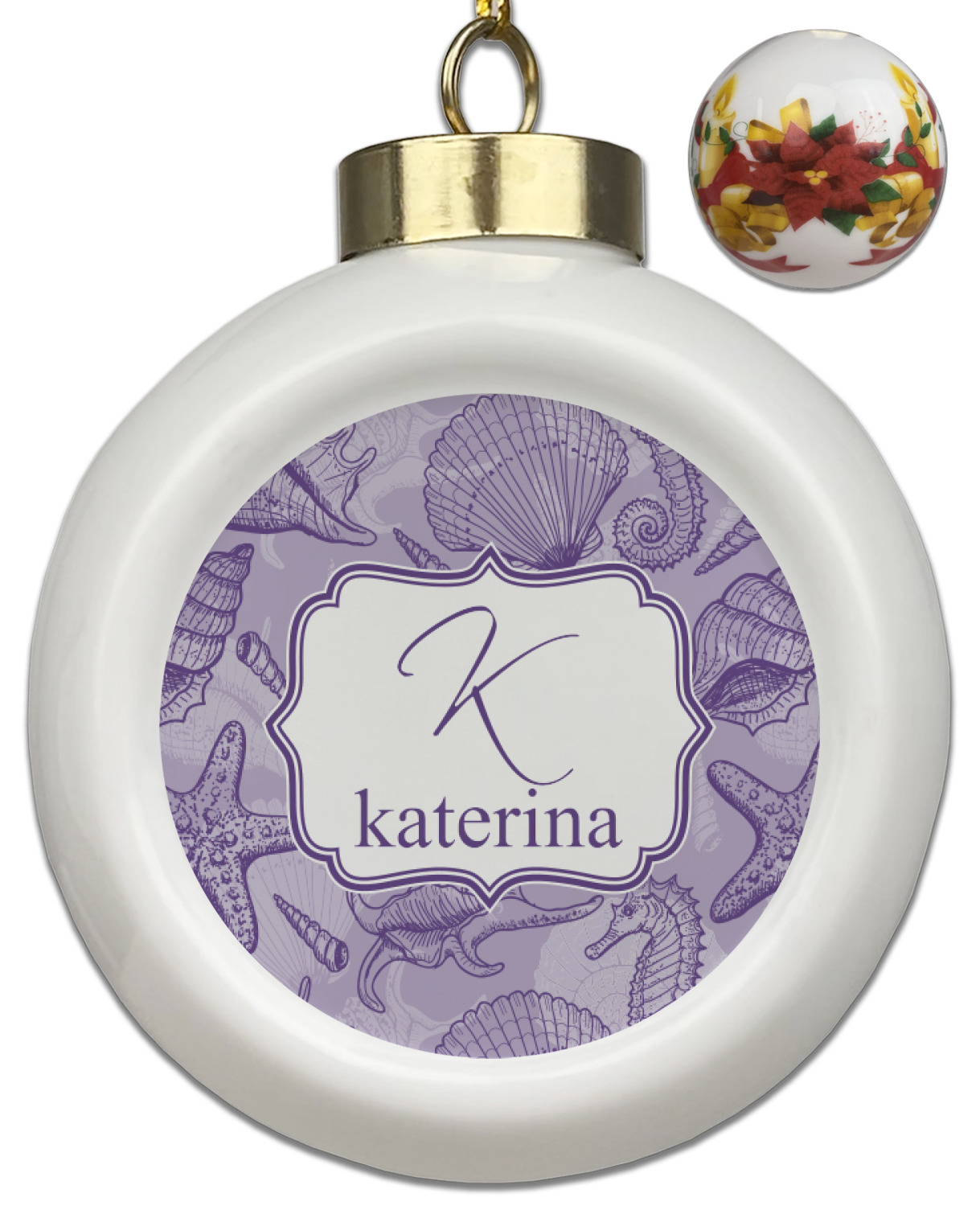 Coastal / Beach Style Designs for Ceramic Ball Ornaments - Poinsettia Garland