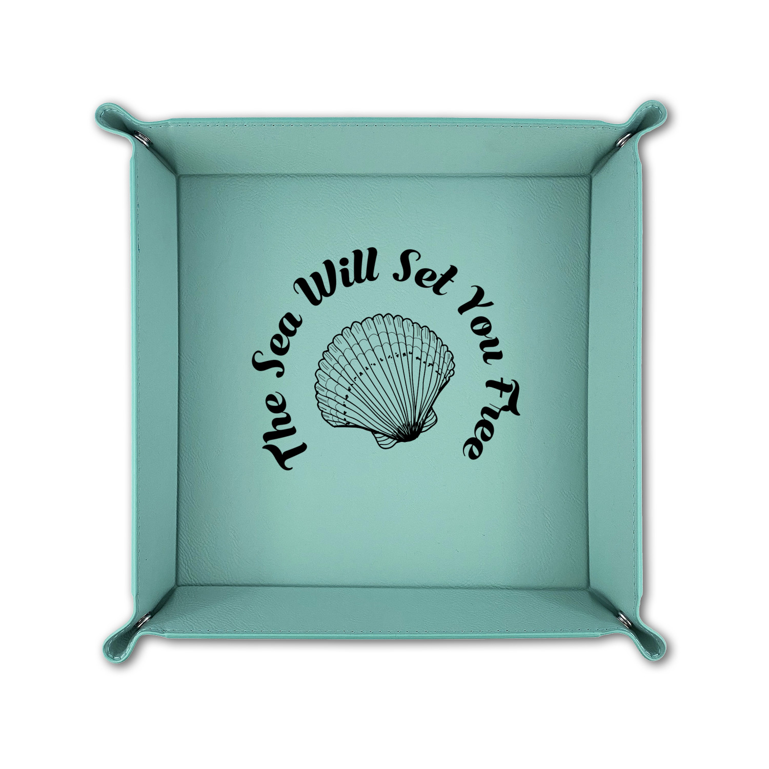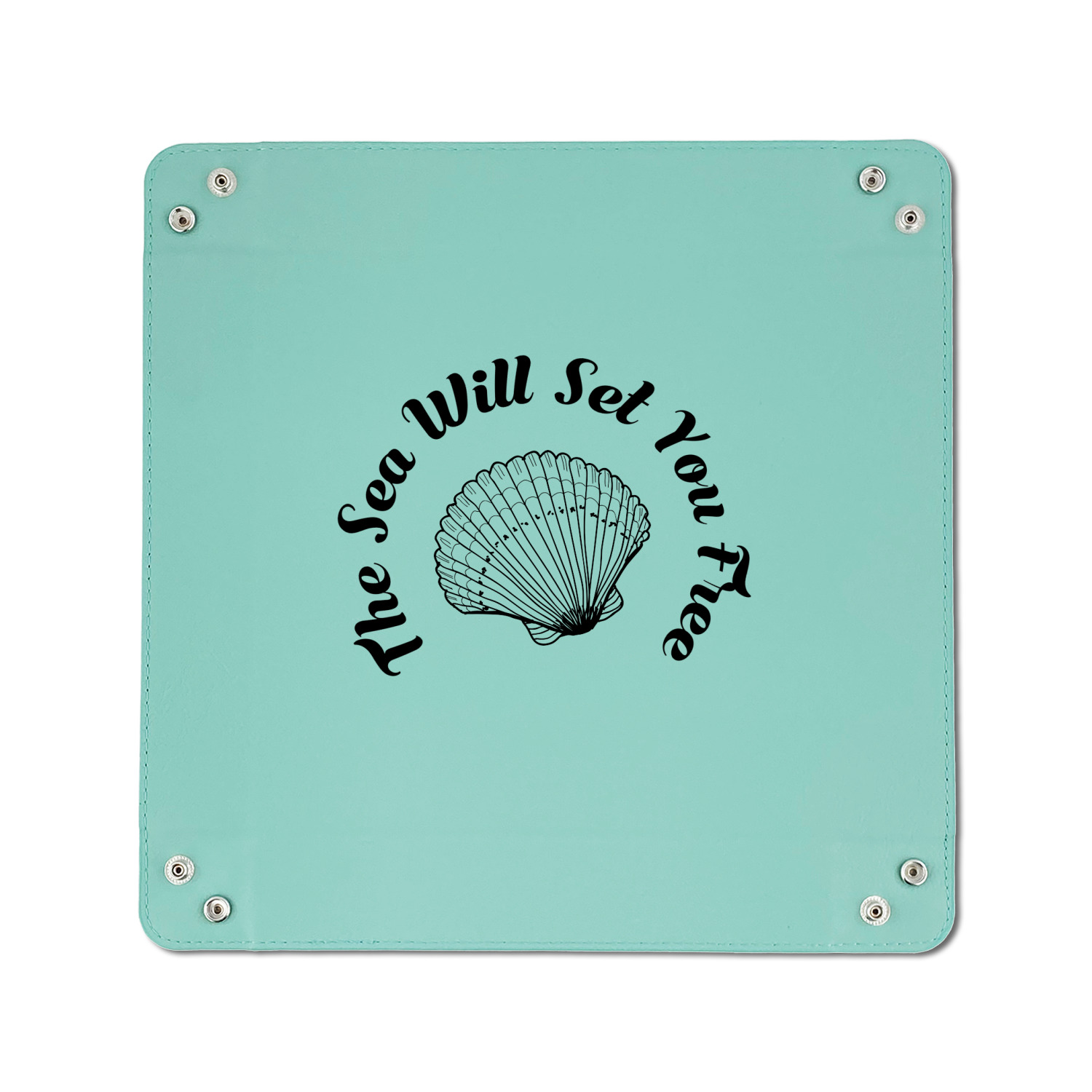 Coastal / Beach Style Designs for Faux Leather Dice Trays - 6" x 6" - Teal