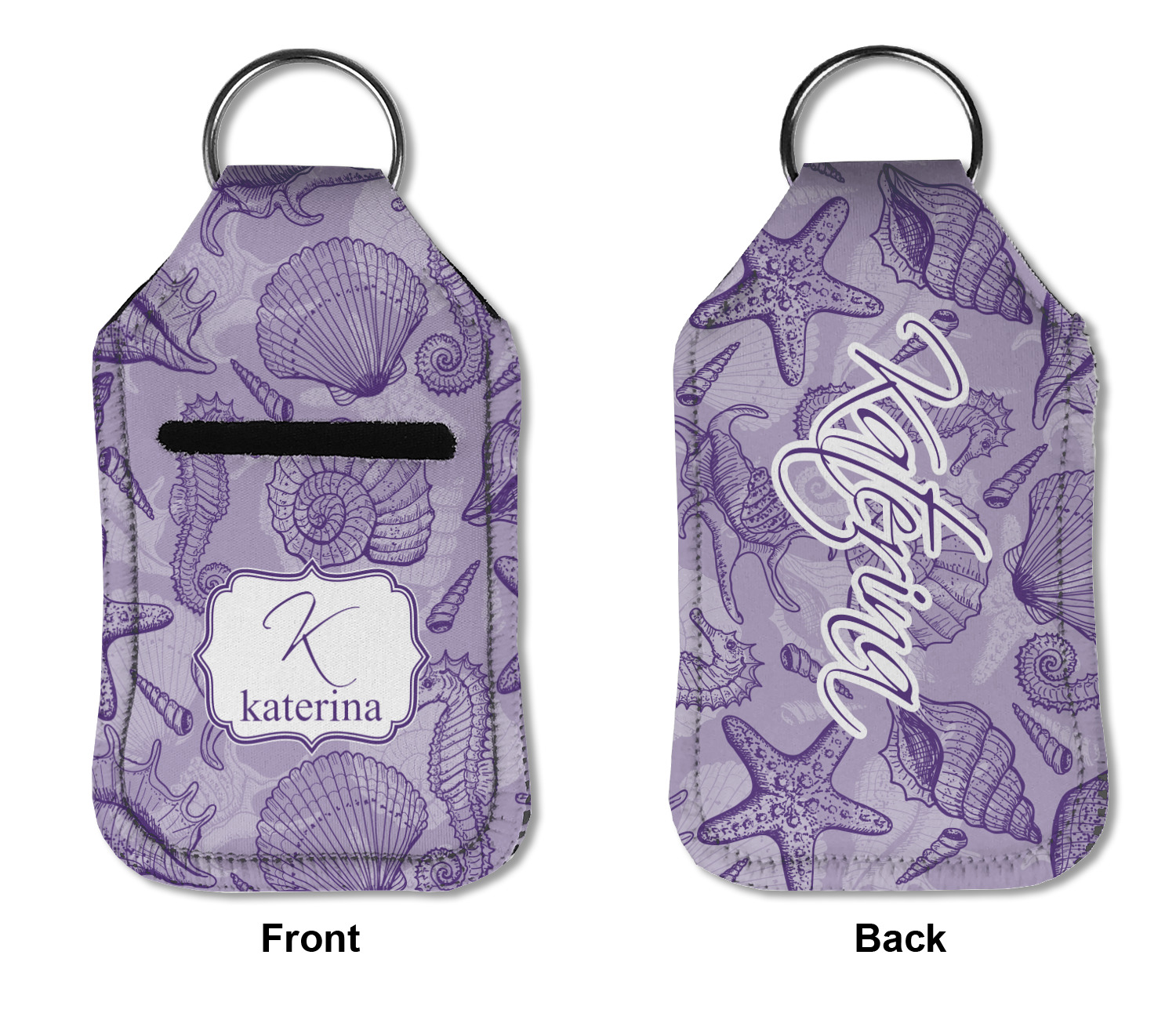 Each hand sanitizer holder comes with its own empty travel-sized, refillable hand sanitizer sure to fit snug in your customized sanitizer case! Our hand sanitizer cases are a durable, yet soft neoprene material sure to last any daily activities or travel agenda. Customize and personalize a hand sanitizer bottle holder with one of our two sizes - small (4.25" x 2.25") or large (5.5" x 2.5"). Each travel sanitizer holder comes with a keyring for attachment on bags, keys, or more!