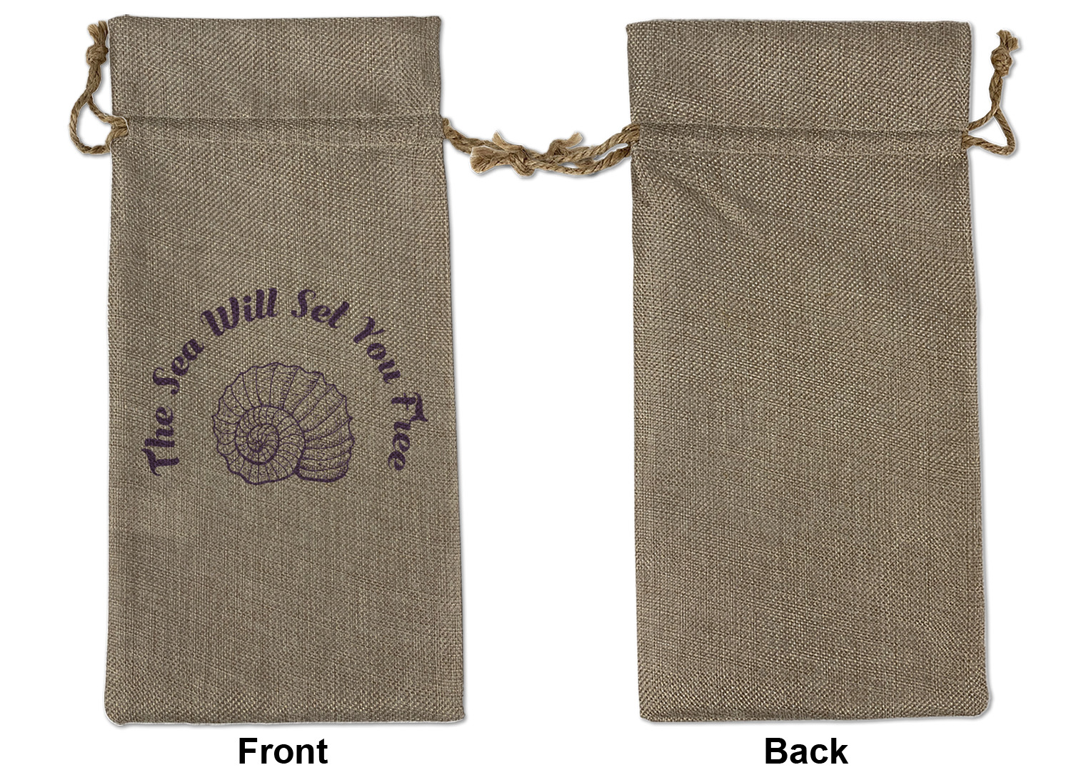 We sell our Burlap Gift Bags in 3 variant sized bags. Made with burlap polyester, each personalized bag can be secured with a twine drawstring pull. Your custom design is available to print on one side or both sides - completely up to you! The sizes of the bags measure approximately 4.5" x 6.5" for the smallest size, 6.5" x 8.0" for the medium size, and 6.5" x 13.5" for the large-sized bag.