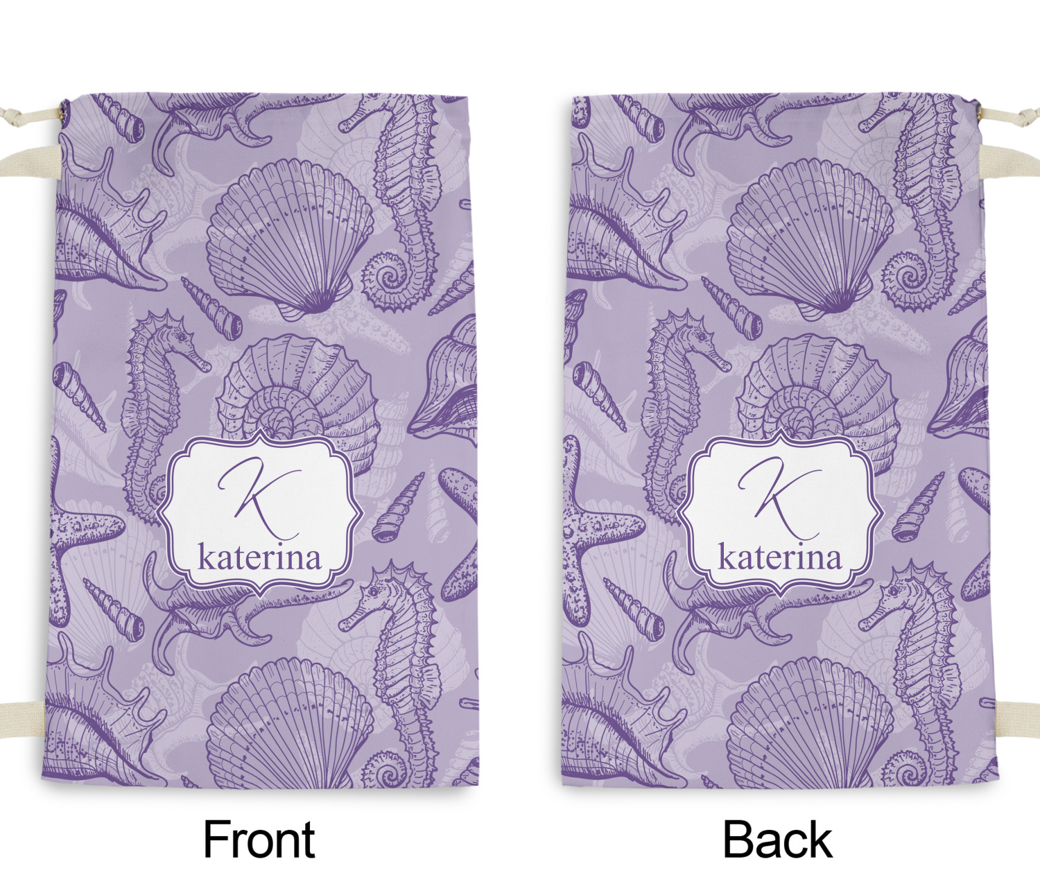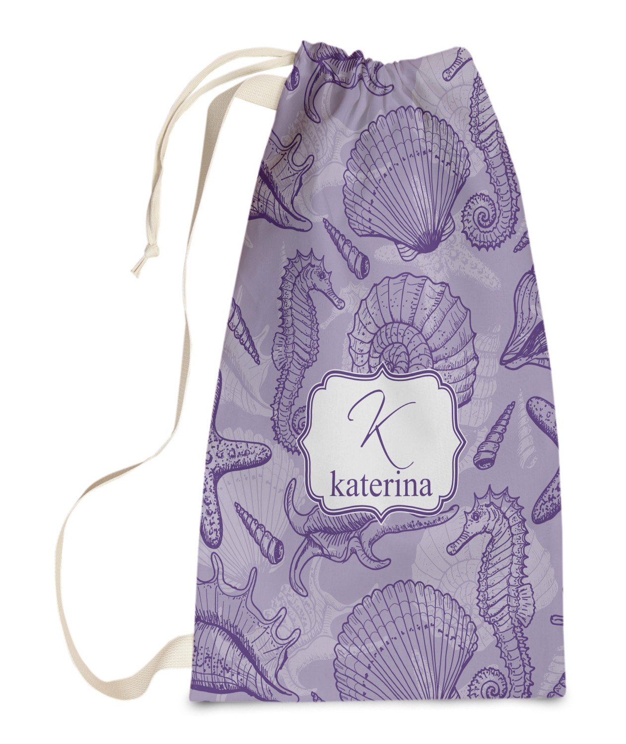 Carry your laundry in style with these customized laundry bags. Available in two sizes, featuring a natural colored woven strap and a cinch cord, these bags hold a lot of clothes or anything else you want to fit in them.