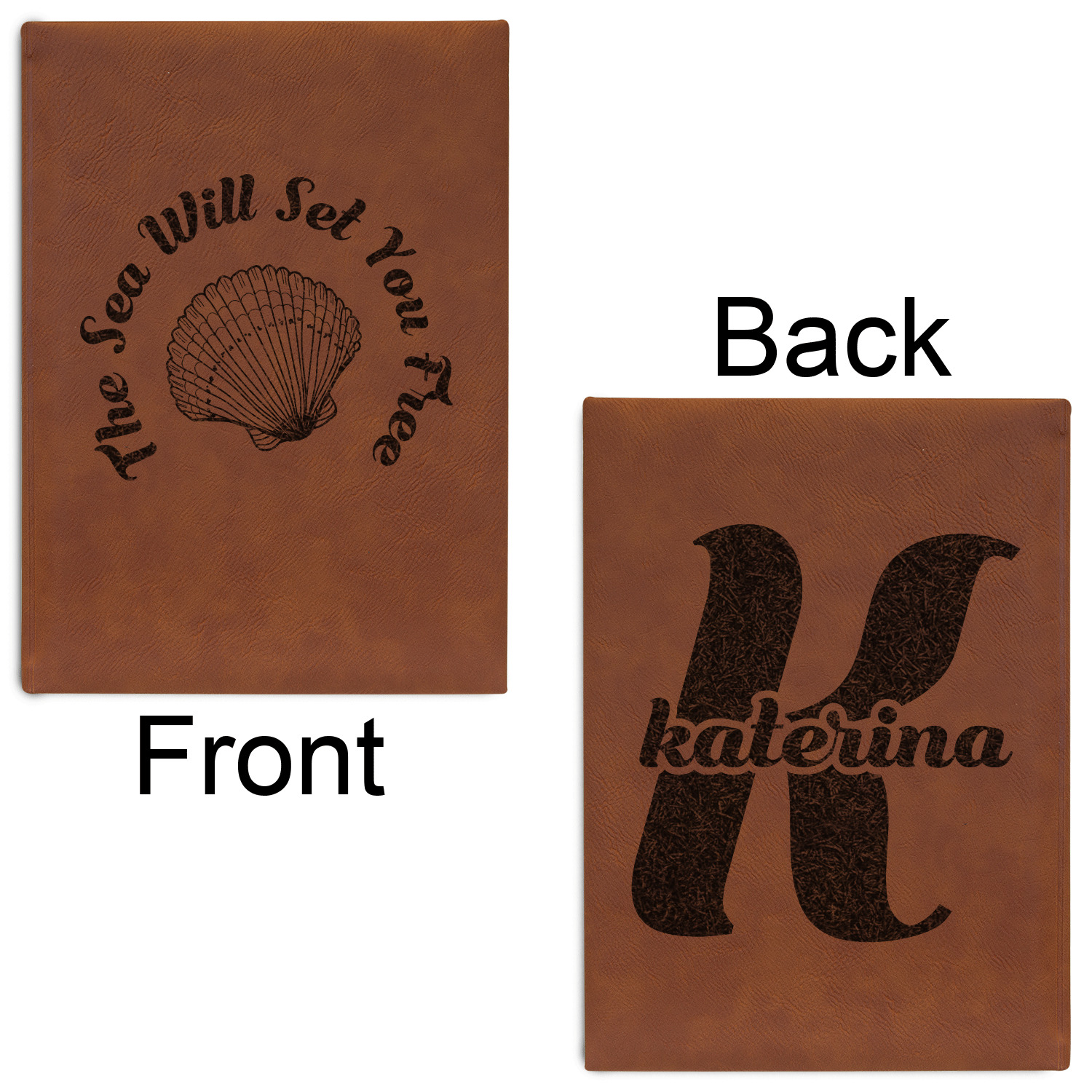 The faux leather covers are a rich cognac / rawhide color and can be customized with your design. From a simple name or monogram or a logo to a detailed mandala - the choice for customization & personalization is truly yours. Customize one of our designs or upload your own.