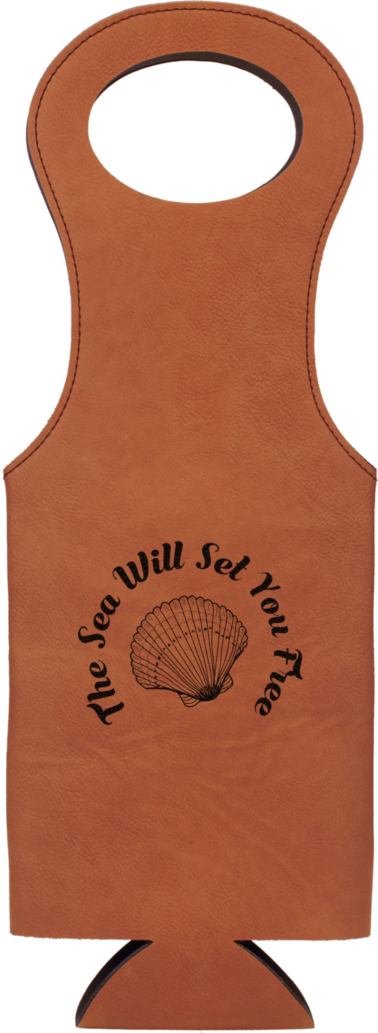 This wine carrier is made from a stunning leatherette, in a cognac-brown color. Strong, black stitching lines the sides of your wine bottle bag and provides extra durability. The interior is lined with a padded, black material to allow for a snug fit once your bottle is placed inside. At the top of this wine gift bag, you'll find two oval shaped handles that elegantly complements the rest of the bag's style. We provide you with the option of laser-engraving the front, or the front and back of your new personalized wine bag!
