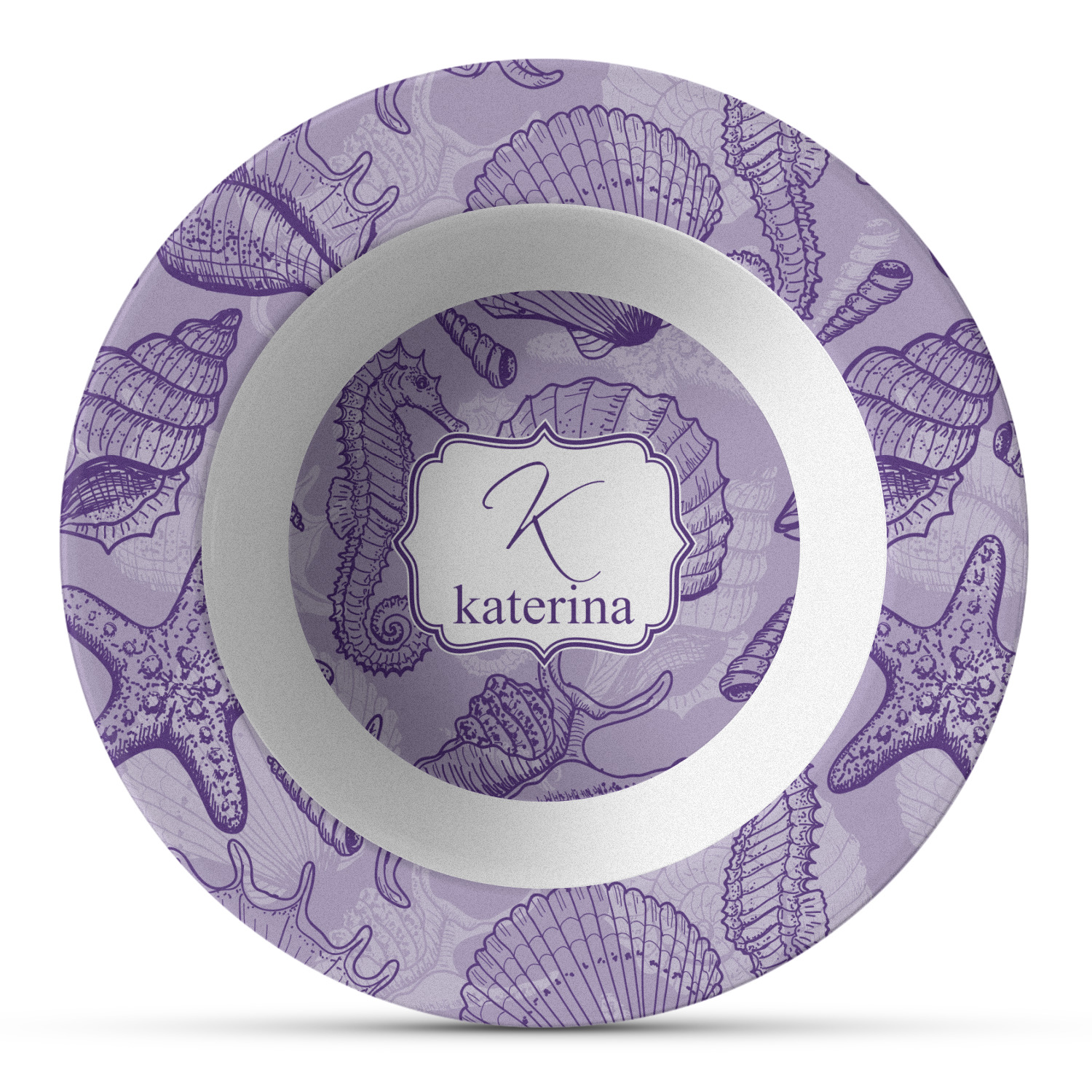 Made from a composite, thermo-set, polymer plastic, these dinner bowls have the versatility, durability, and weight of a melamine bowl without any of the downsides of melamine. Unlike melamine dinnerware, these bowls can withstand high heat. These custom plastic bowls can even handle temperatures of up to 250 degrees Fahrenheit, for up to 60 minutes. The pieces of our plastic dinner set are never made with harmful chemicals, such as BPAs, formaldehyde, DEHPs. We display your personalization on the base of this bowl's interior, while the bowl itself has an 8.75" diameter and is 1.75" tall.