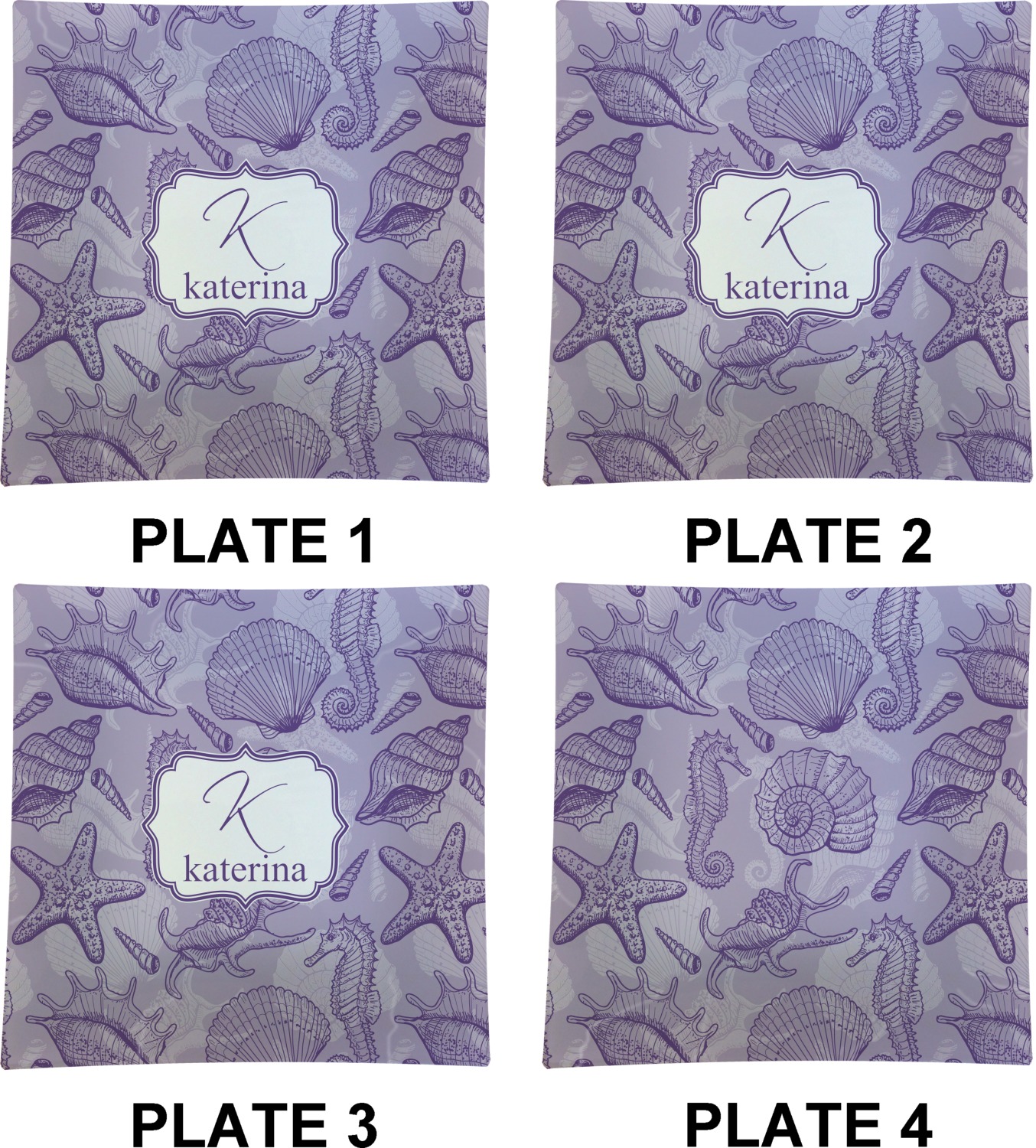 Coastal / Beach Style Designs for Glass Square Lunch / Dinner Plates 9.5" - Set of 4