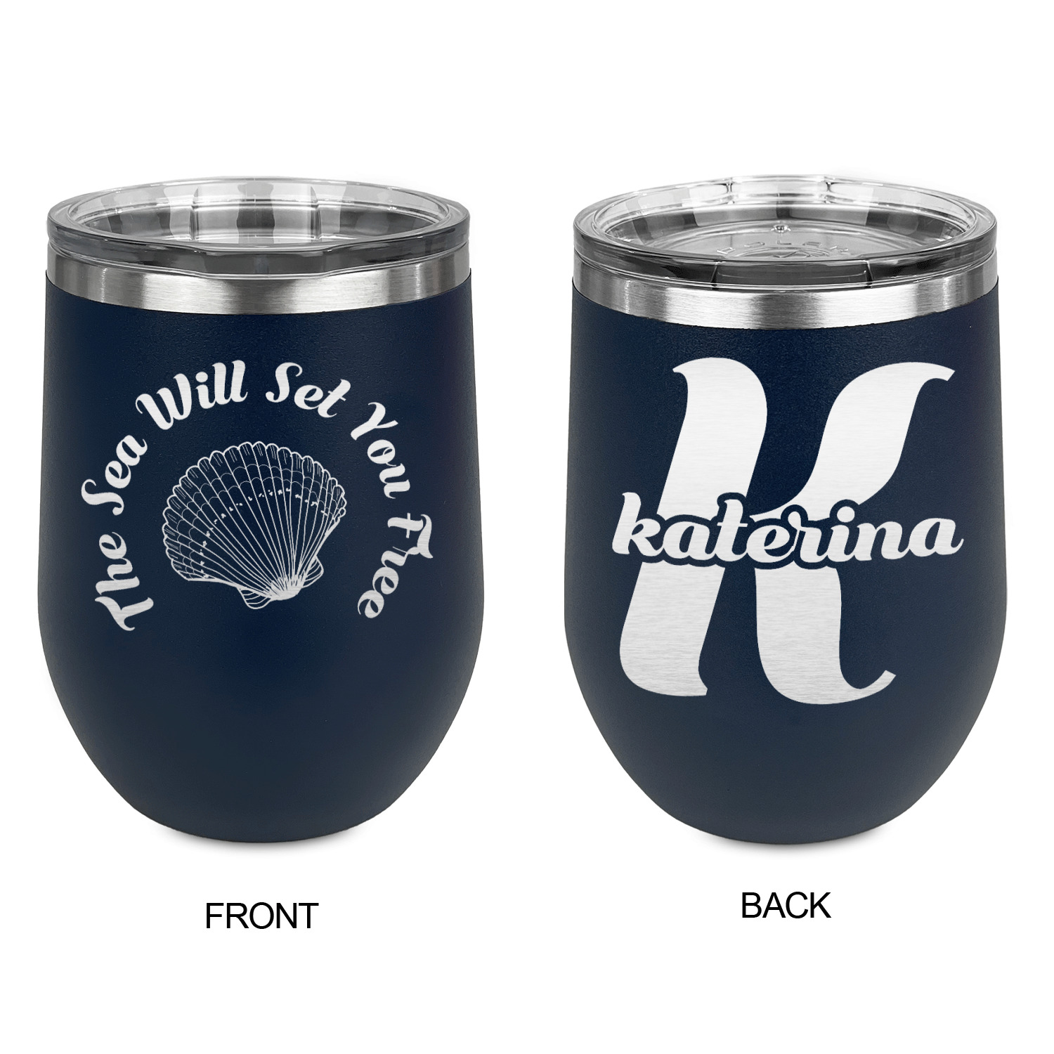 Coastal / Beach Style Designs for Stemless Stainless Steel Wine Tumblers - Navy - Double-Sided
