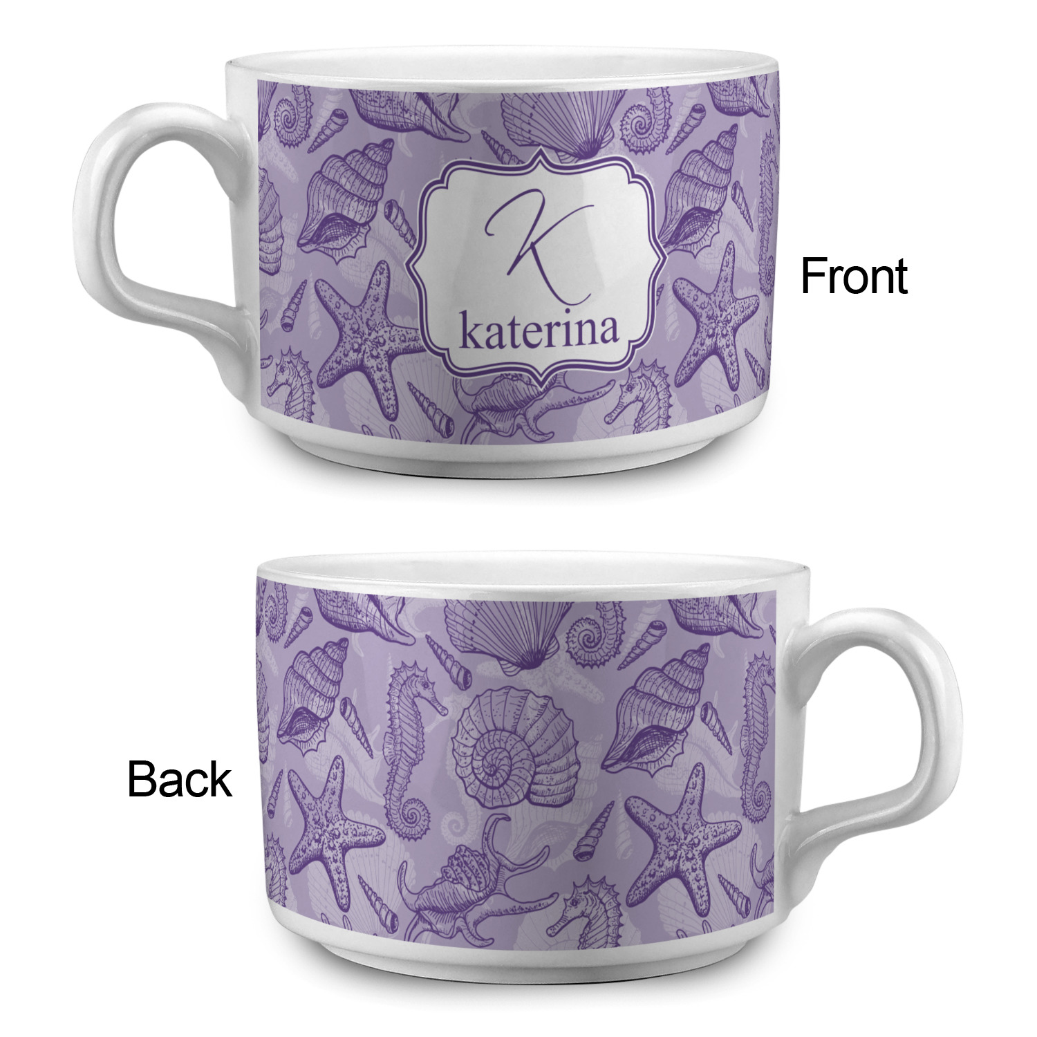 Personalize your cup with the perfect design! The white ceramic makes for a bright background to whatever personalization you decide to add to your little cup. Give your tea or coffee some class! Choose from thousands of patterns and fills in our system to fit your personality! Change whatever elements you like from the text to the ribbons to the graphics.