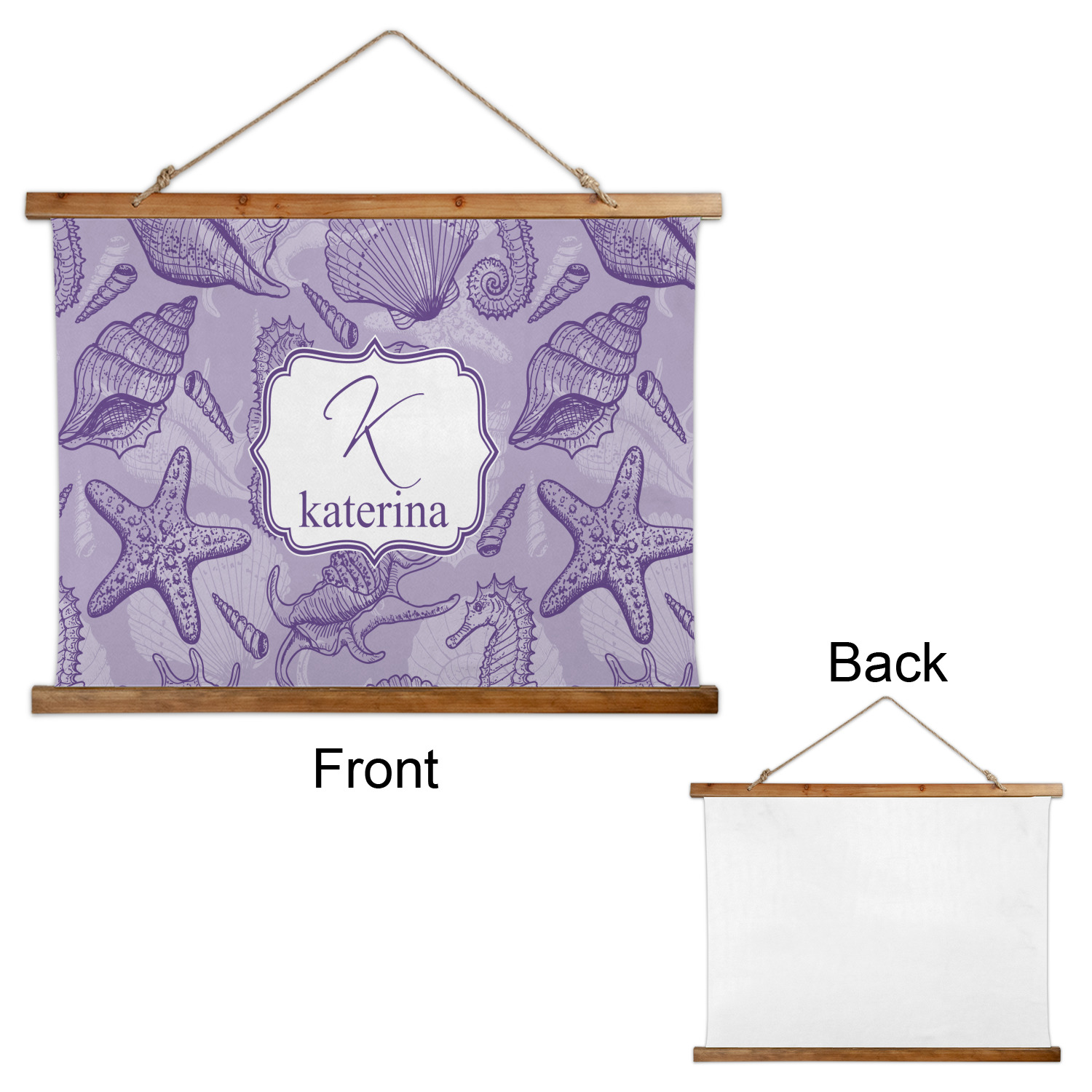 Made in two different orientations - portrait or landscape - both are 26" x 36". Your design is printed on a high quality polyester fabric with hemmed edges. The wood on the top and bottom of the tapestry is 1.25" tall and 0.25" thick and there are two pieces on top and bottom which sandwich the fabric.