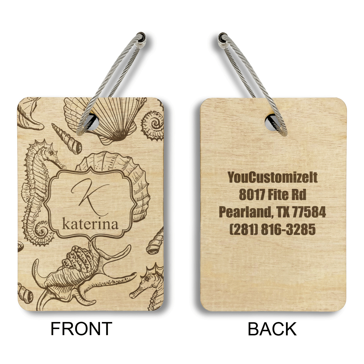 Made from a premium hardwood, these luggage tags are laser engraved and cut just for you. The front contains your design of choice and the back has your contact information to ensure your luggage gets back to you if ever lost.