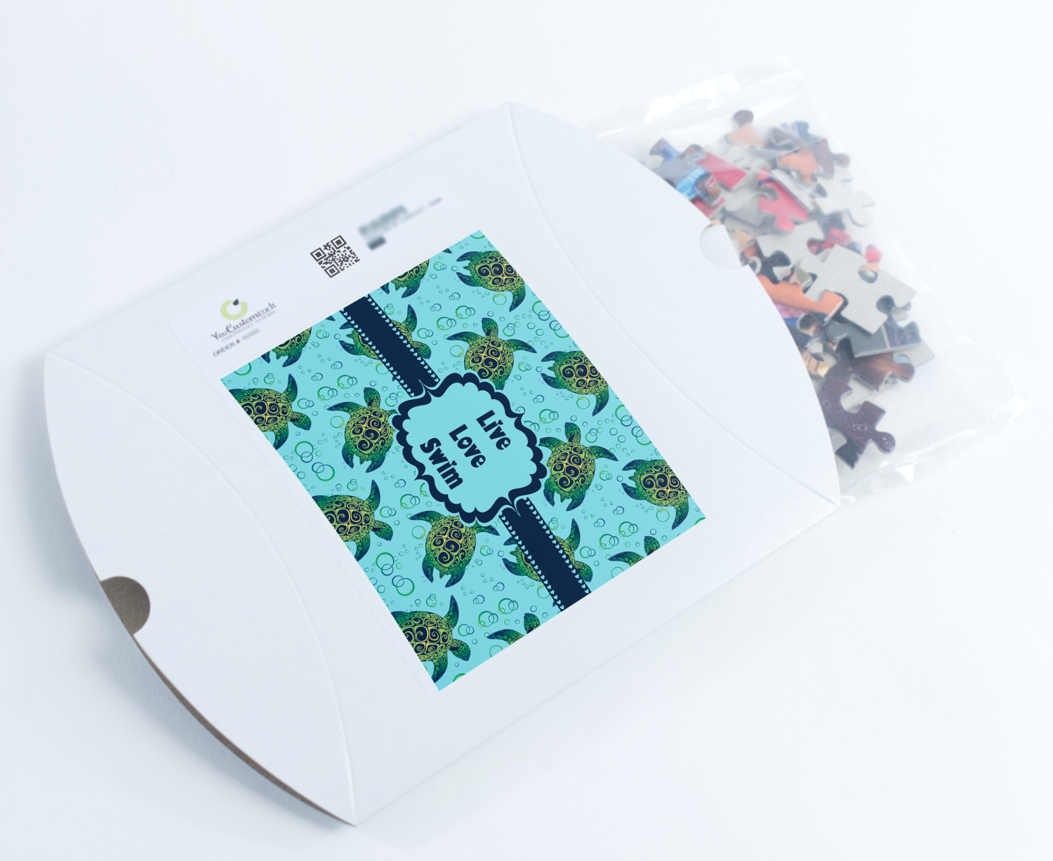 You can also upload your logo or art that you or your kids drew. To create more challenging jigsaw puzzles, you can create a pattern from with your logo or artwork. You can also add other elements such as text or personalization.