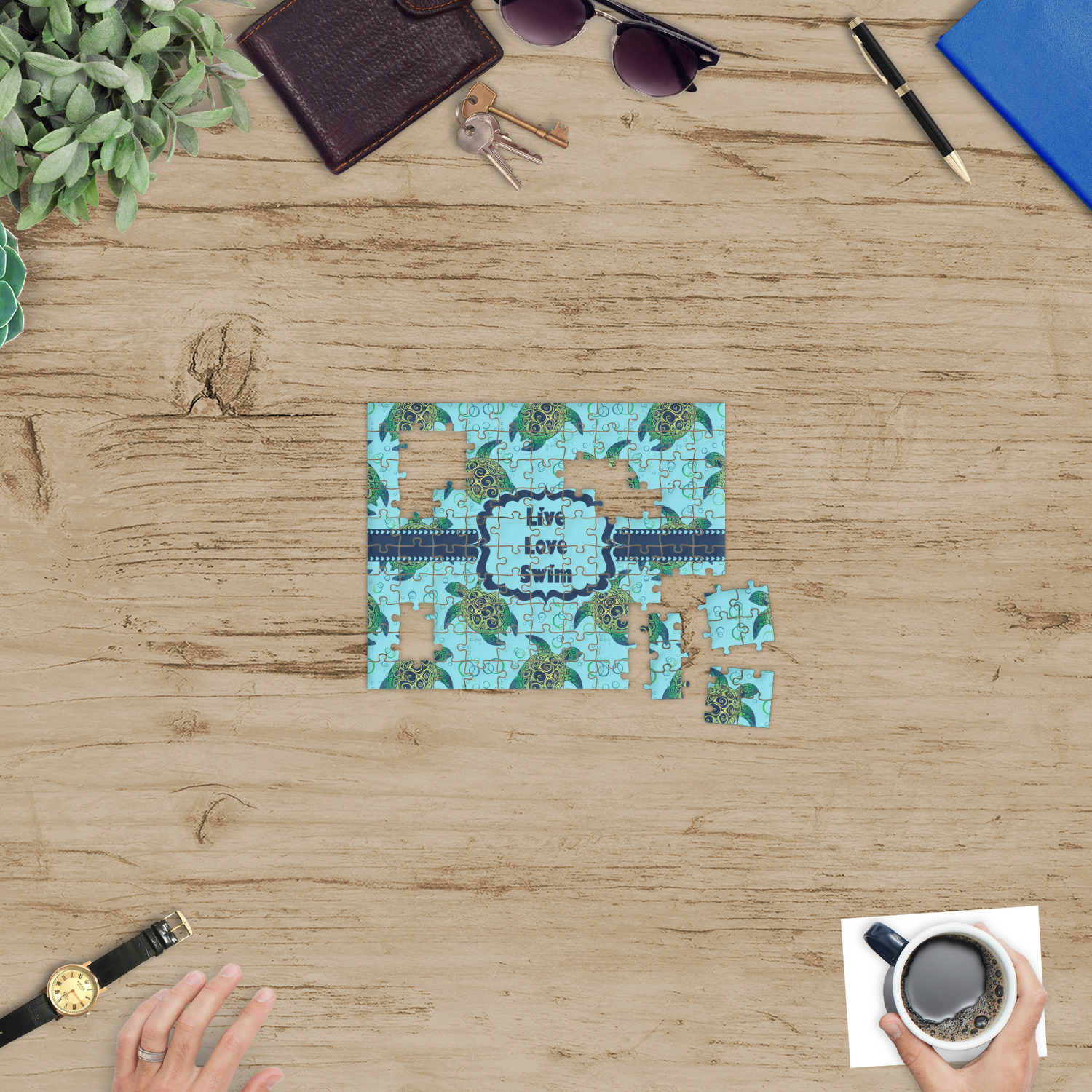 Depending on the look you are trying to achieve, you can add; a thematic pattern or background, with a photo in a frame and text or personalization to your puzzle. Basically if you can imagine it, you can design it!