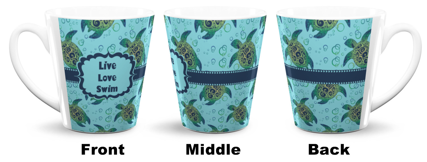 Choose from one of our two ceramic latte mug sizes. Our 12oz latte cups are great for a few shots of espresso or some tea before bed. The 16oz mug is a tall latte mug perfect to hold iced coffee or give you extra room to sip your favorite drink. We print your design with a glossy finish wrapping around the outside of the ceramic mug, so make sure your design is displayed to your ideal vision!