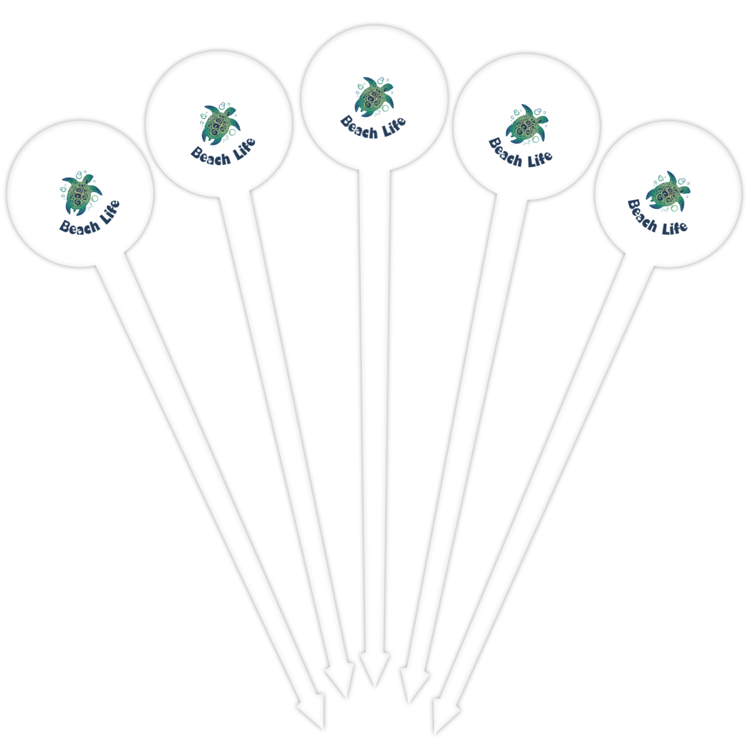 Our plastic cocktail picks have a round disc on top that is printed in full color with your event theme, colors, your logo, your photo, names, initials, monograms etc.
