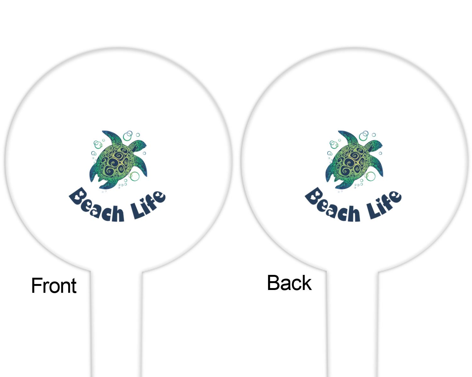 The round disc on these food & drink picks can be customized and personalized to your specifications. Your image will be printed in full color on one side or both sides. You can use the same image on both sides or use two different images.