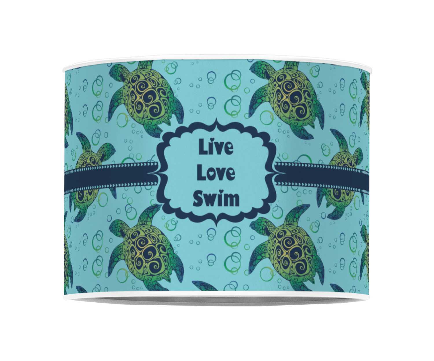 We chose a calming teal for the entire background, navy blue for the turtles background color along with a navy blue ribbon and label. We chose the hearts ribbon, a fancy label and live, love swim for personalization in the hearts font