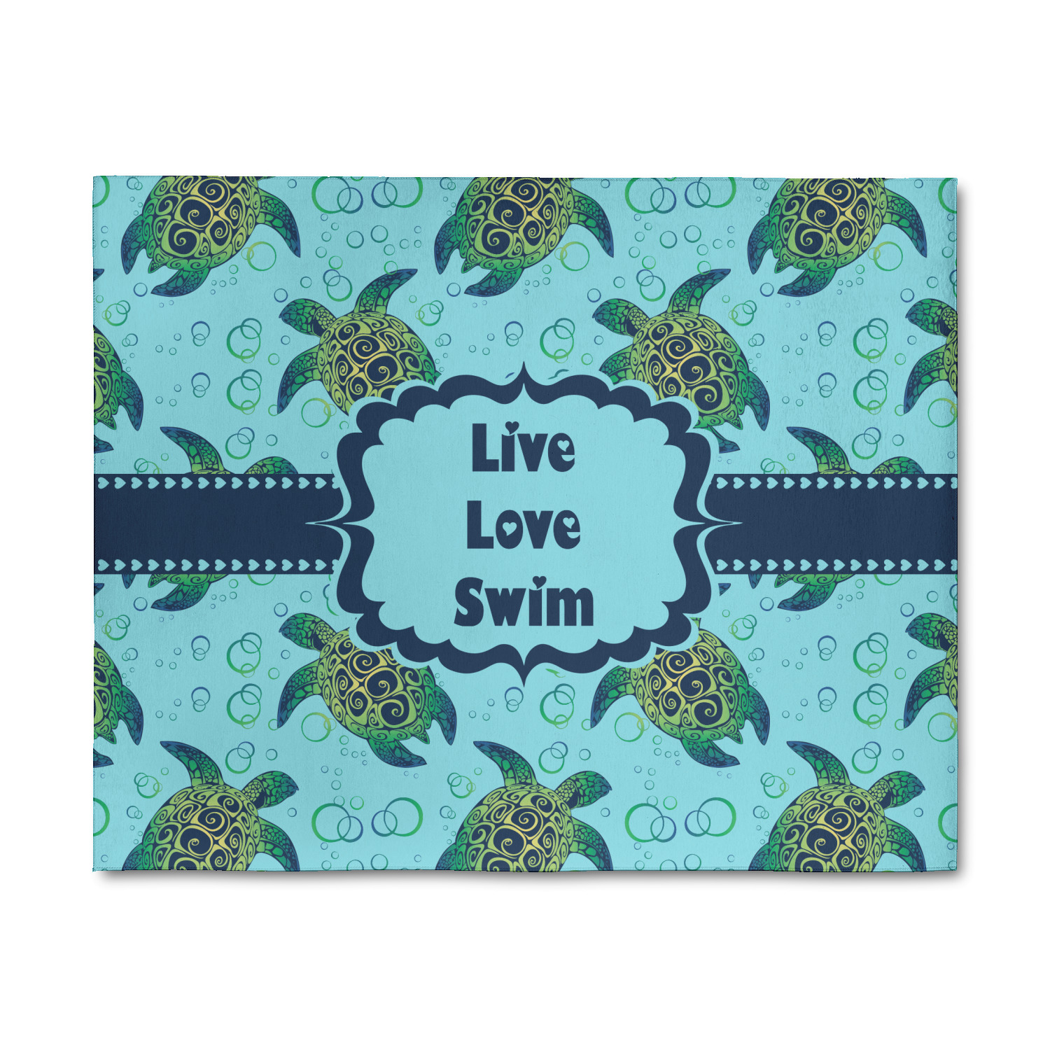 We chose a calming teal for the entire background, navy blue for the turtles background color along with a navy blue ribbon and label. We chose the hearts ribbon, a fancy label and live, love swim for personalization in the hearts font