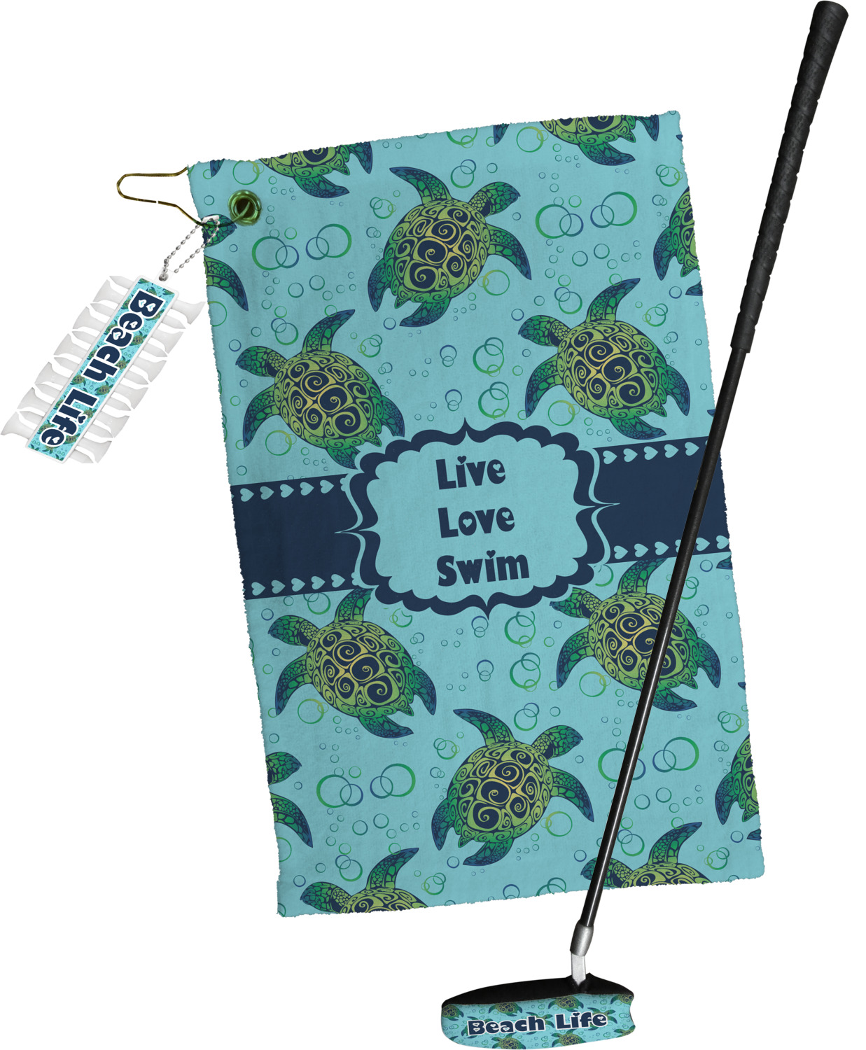 The custom printed putter cover is also part of a golf towel gift set, which includes a golf towel, this putter cover and golf tees & ball marker set, so you may want to consider purchasing the set to save some money!