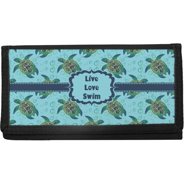 The checkbook cover is made of a durable canvas and the front flap is decorated with a vibrant design of your choosing. With 4 slots for credit cards or IDs, and 2 compartments for your checkbook register, cash, receipts, business cards, and more; this checkbook cover could easily double as a wallet.