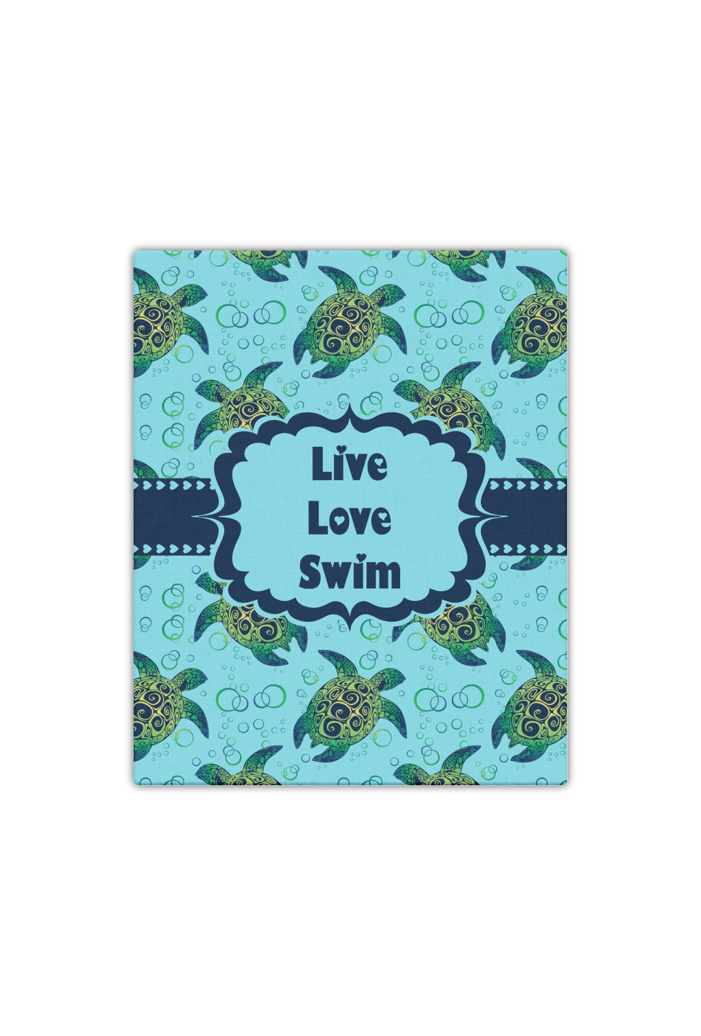 We chose a calming teal for the entire background, navy blue for the turtles background color along with a navy blue ribbon and label. We chose the hearts ribbon, a fancy label and live, love swim for personalization in the hearts font