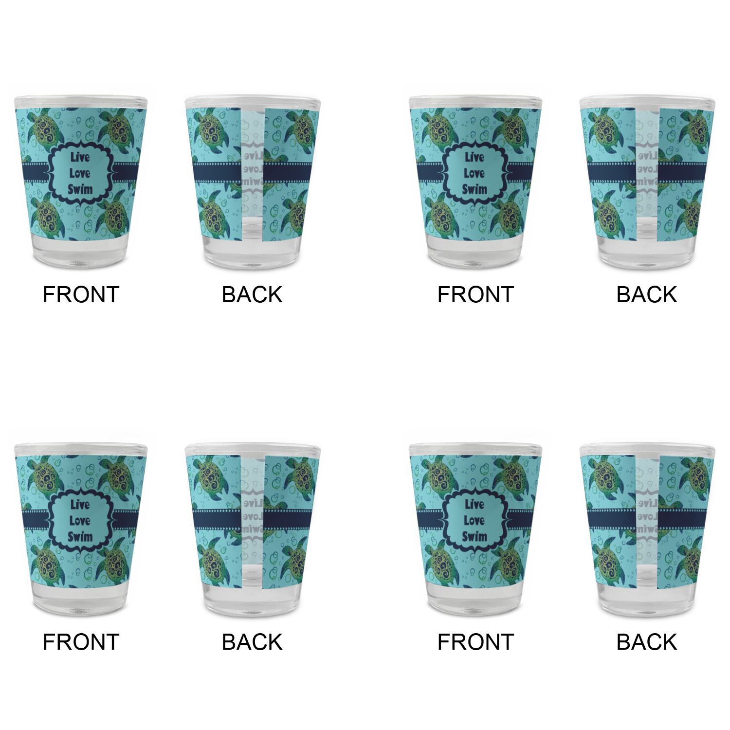 Made with frosted glass, these shot glasses are printed in full color with the design of your choice. They are a standard 1.5oz shot glass and are 2.4" tall. The print is wrapped around the shot glass in a full wrap and boldly displays your customization.