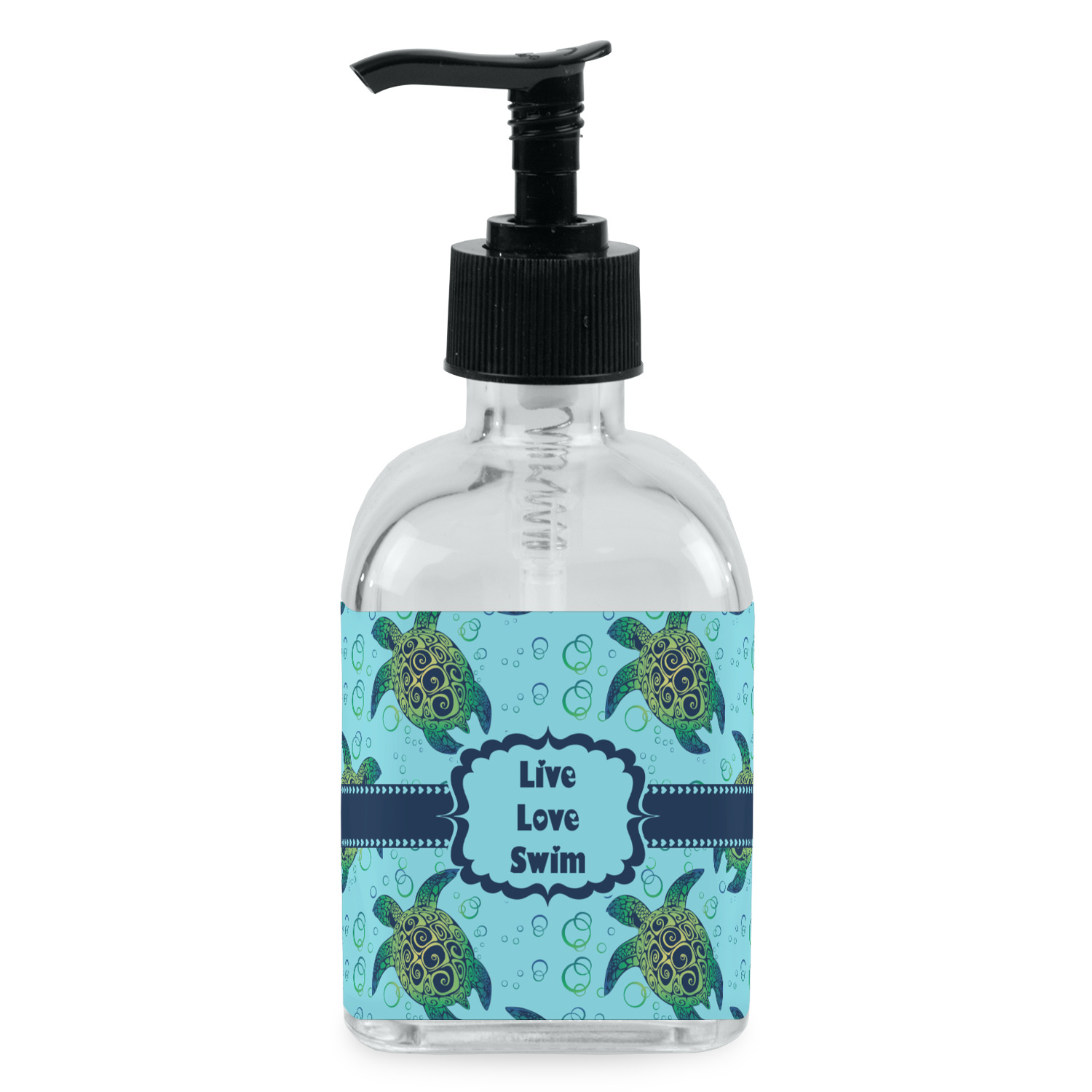 Crafted from a high-quality glass, these soap dispensers and lotion dispensers are durable and robust, while still looking elegant. They are sold with black pumps. Each soap dispenser pump measures at 6.5 by 2.25 inches. On these soap pumps, we display your customized design on a personalized vinyl adhesive on three sides. That way, you can judge how much liquid is in the bottles from the back.