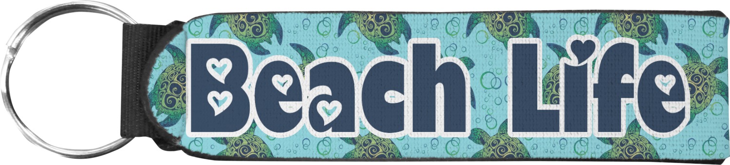 Made from neoprene, these key fob wristlets are comfortable, cushioned, easy to slip on and off; these traits allow it to maintain a slim, yet fashionable appearance, all while optimizing your efficiency. When attaching or removing keys, simply squeeze open the included metal ring. These fobs measure at around 4 inches, and have a bit of a stretch. Thus, they are best suited for small to medium size wrists. If you require a larger size, check out our webbing keychain fob for larger sizing.