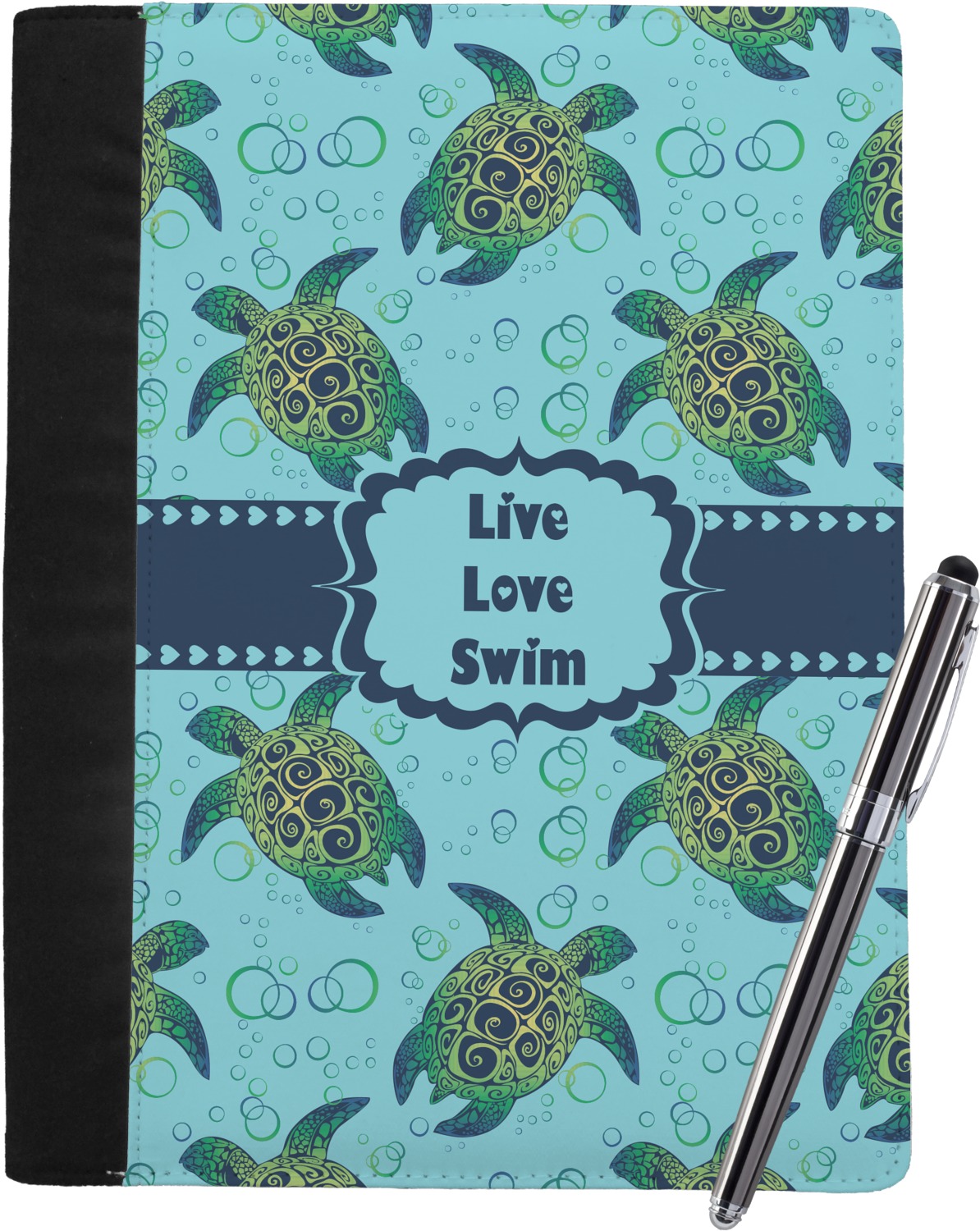 Our sea turtles design is absolutely gorgeous. The background of our design has sea turtles along with water bubbles swimming in a very calming teal blue water. This design can be customized with your colors.