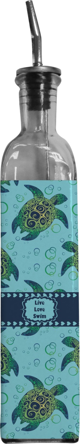 Made from recycled glass in Spain, these oil bottles have a classic, delicate look, and are accompanied by a metal spout for controlled pouring. Each bottle holds approximately 13 ounces and measures at 12 by 2 inches. We customize your glass oil bottle by applying your personalized design on the front and sides, using an adhesive. Our customizable stickers are made from high quality, gloss vinyl and are printed with waterproof, eco-solvent inks. These pieces are machine cut for accuracy and symmetry. The result is a robust, waterproof, adhesive decal that will not fade or deteriorate with time.
