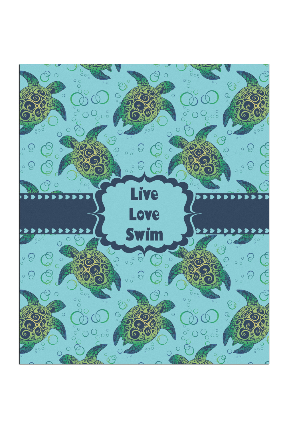 We chose a calming teal for the entire background, navy blue for the turtles background color along with a navy blue ribbon and label. We chose the hearts ribbon, a fancy label and live, love swim for personalization in the hearts font