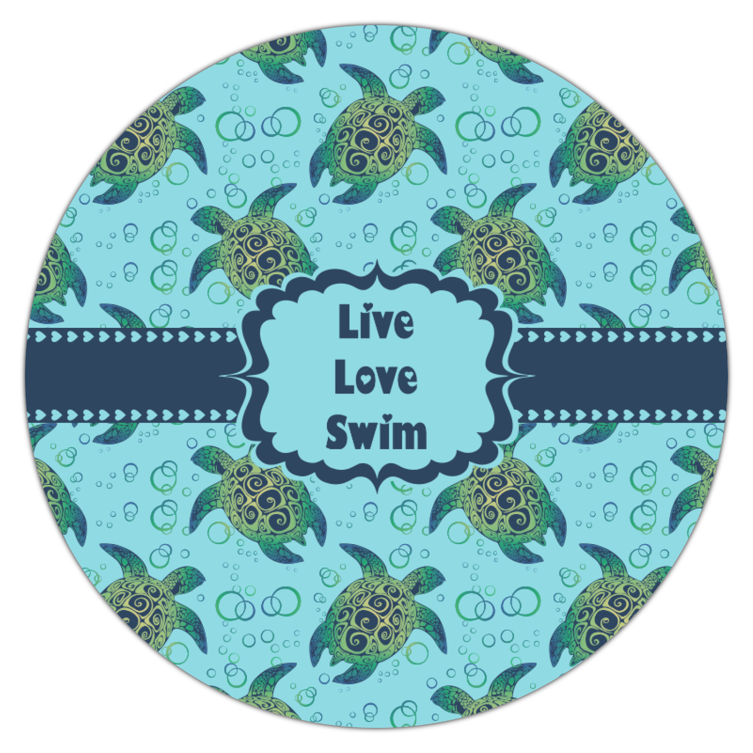 We chose a calming teal for the entire background, navy blue for the turtles background color along with a navy blue ribbon and label. We chose the hearts ribbon, a fancy label and live, love swim for personalization in the hearts font