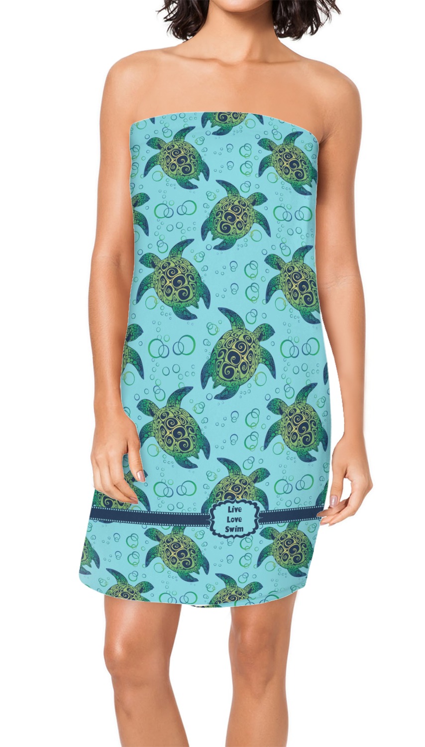 Made from a plush, fleece fabric, these luxurious towel wraps are comfortable and absorbent. They are printed, cut, and sewn for you, right here in the USA, after you place your order. These personalized bath wraps measure at approximately 59 by 32 inches, and display your customization across the outside.