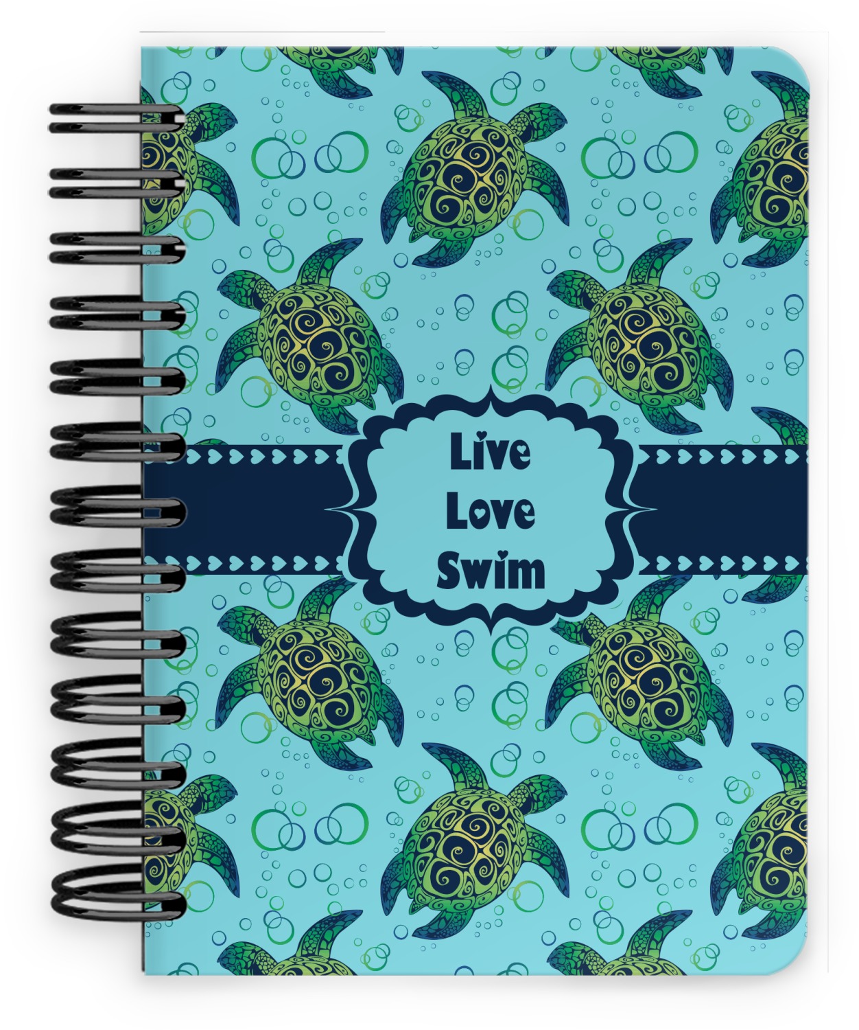 This spiral notebook includes 75 sheets of thick, ruled paper. The front and back of this custom notebook is made of a robust, laminate, plastic covering. We print your personalization on these two panels, underneath a glossy finish, which emphasizes the colors of your design. The two panels and the sheets of paper are held together by a sturdy, black coil. The paper within your bound notebook is perforated for easy, clean tearing.