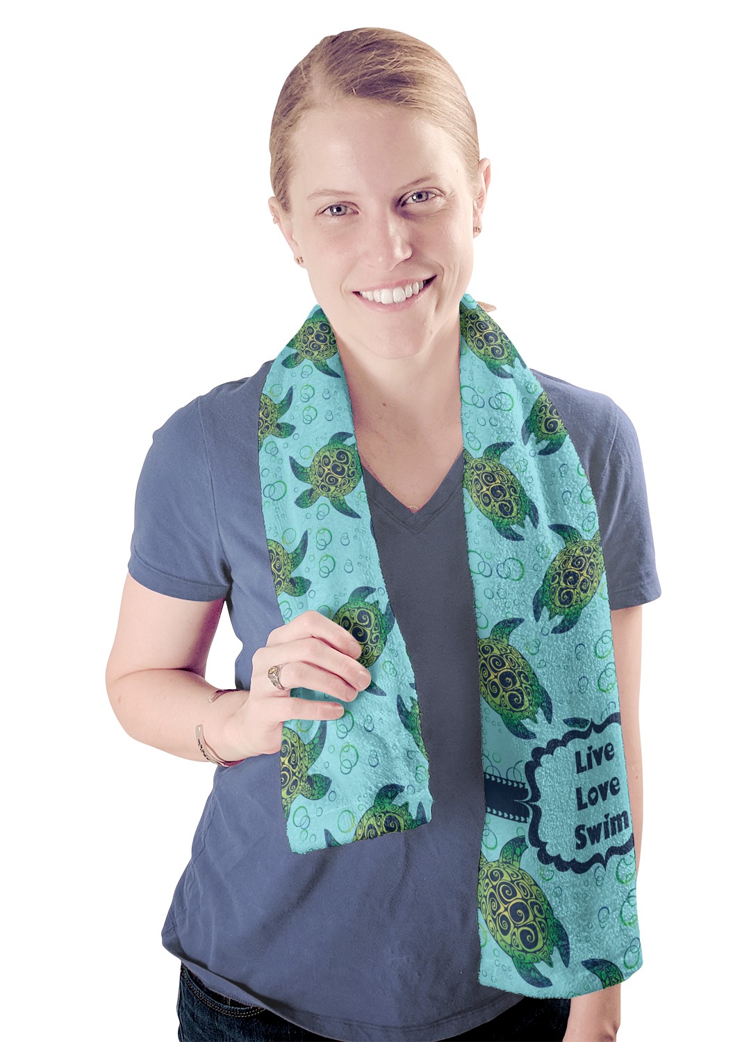 These towels are 44" x 12", which are the perfect size for hanging around your neck on the treadmill or wiping your brow after a hard workout. They are full-print towels with your very own design printed right on the front! They are perfect for soaking up moisture and are quite soft against your skin.