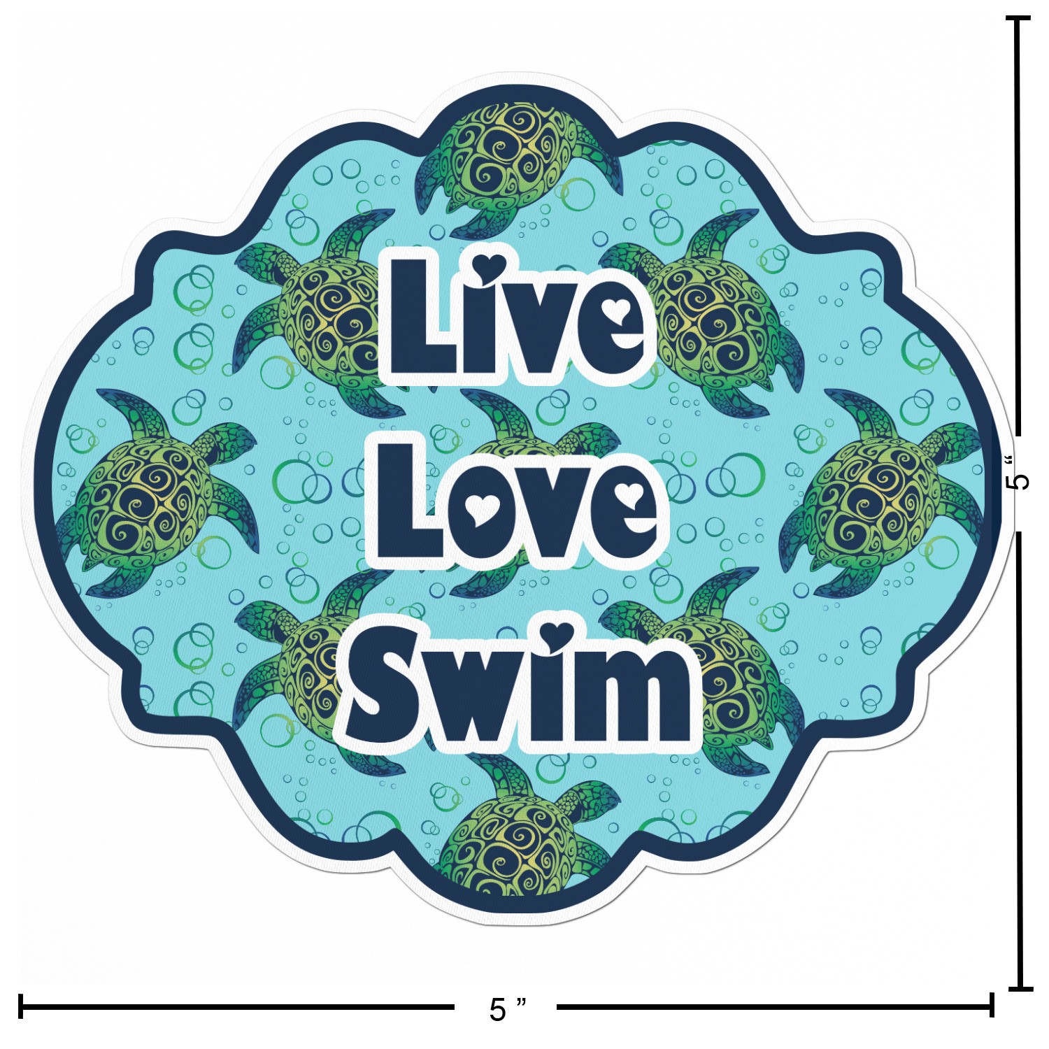 We chose a calming teal for the entire background, navy blue for the turtles background color along with a navy blue ribbon and label. We chose the hearts ribbon, a fancy label and live, love swim for personalization in the hearts font