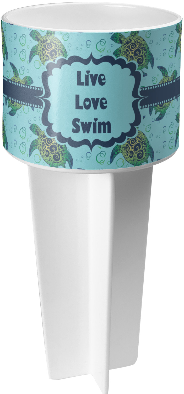 This cup holder has a large stake at its bottom that anchors it to the sand or ground below, while the cup holder rests above the stake. The entire drink holder is made of durable plastic and displays your customization around the cup holder portion. We sell these personalized beach spikers in two different colors: black and white.