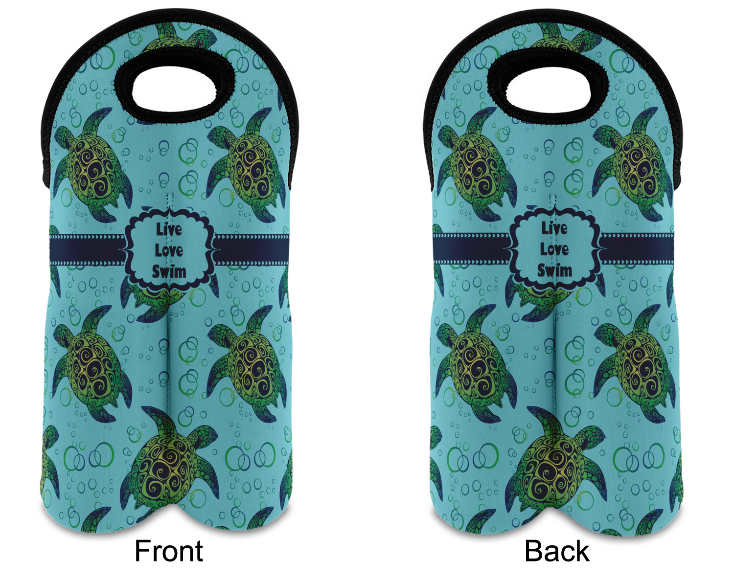 These tote bags are insulated to keep the bottles cold and have a stitched separation down the middle and double handles to keep the two bottles safe and secure during travels.