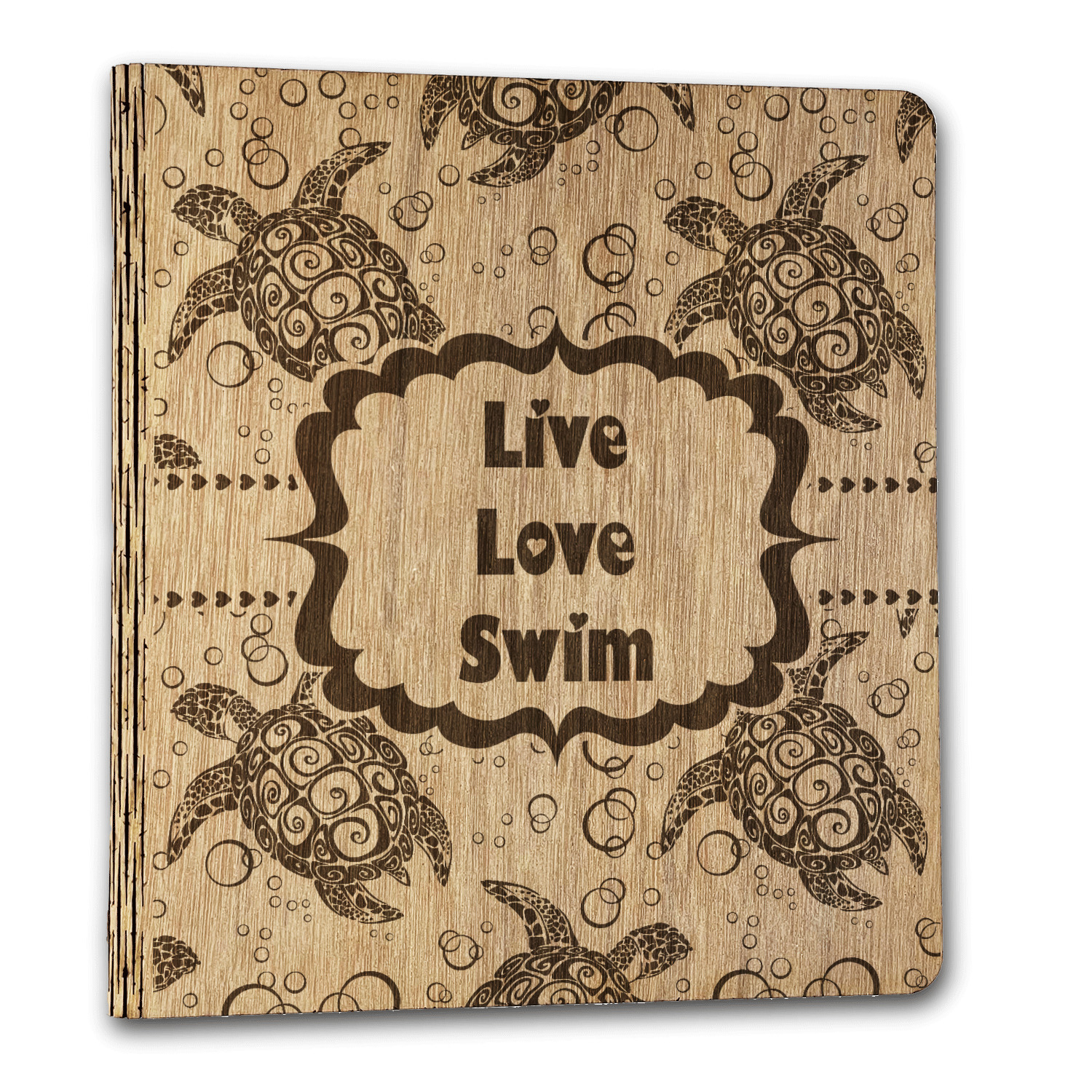We chose a calming teal for the entire background, navy blue for the turtles background color along with a navy blue ribbon and label. We chose the hearts ribbon, a fancy label and live, love swim for personalization in the hearts font