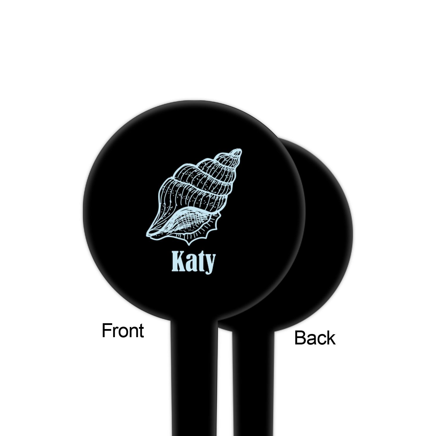 Coastal / Beach Style Designs for 4" Round Plastic Food Picks - Black - Single-Sided