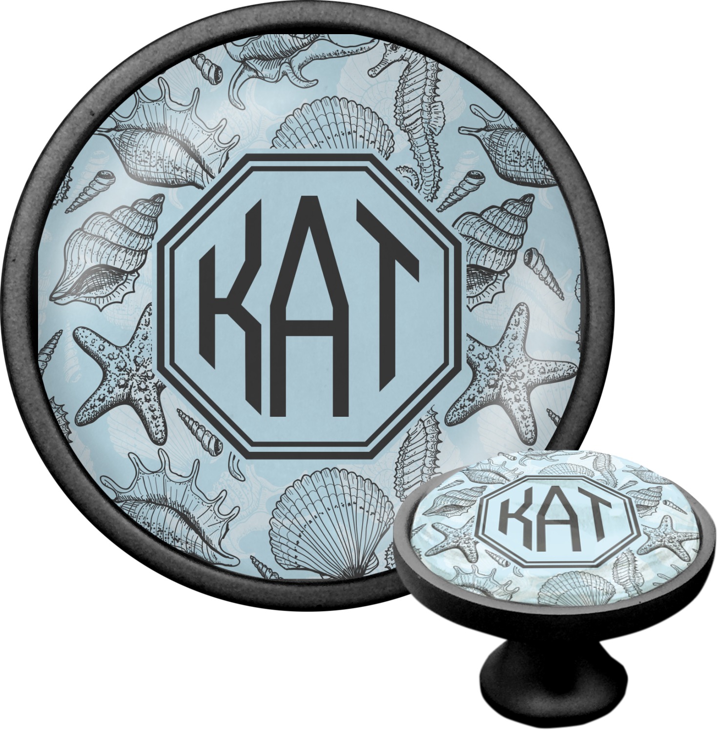 We sell these cabinet pulls in two different colors to better match your room's color scheme. We offer an oil-rubbed bronze base that is black in color, and a satin nickel option, which has a silver color. Your design is displayed across a high gloss vinyl insert that is placed on top of these cabinet handles. We then place a 1 inch thick glass cabochon atop the design, which seals the cabinet knob and makes the colors of your customization stand out. These custom cabinet knobs are approximately 1.3 inches in diameter. Your purchase includes a 1 inch screw that can be used to mount the knob to any cabinet in your home.