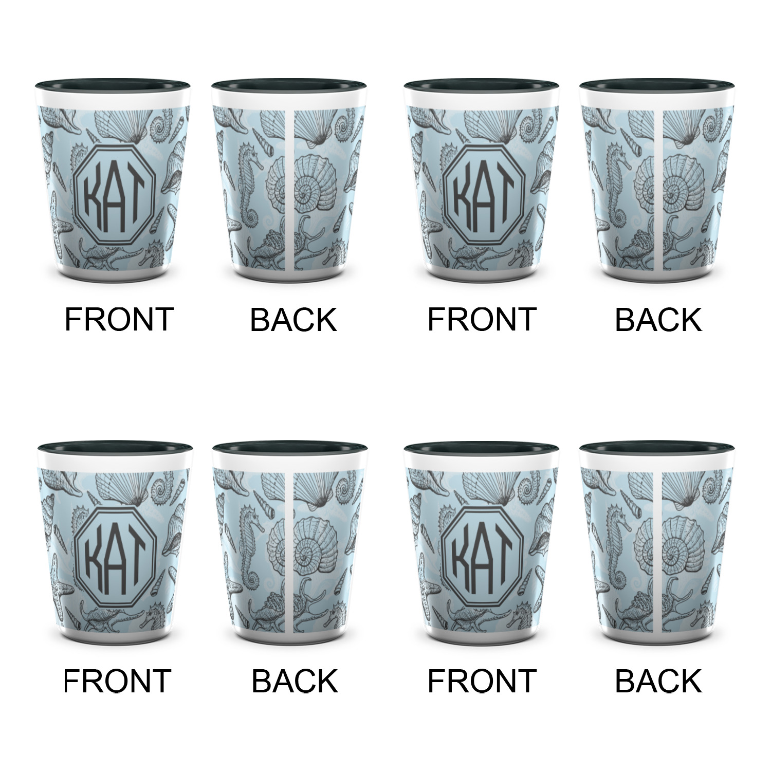 Coastal / Beach Style Designs for Ceramic Shot Glasses - 1.5 oz - Two Tone - Set of 4